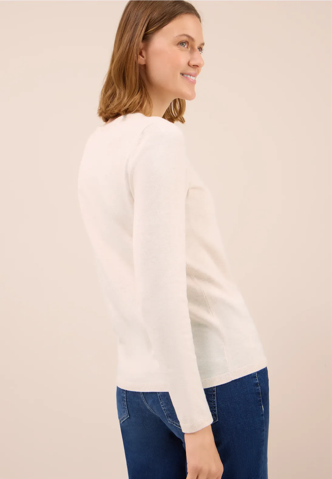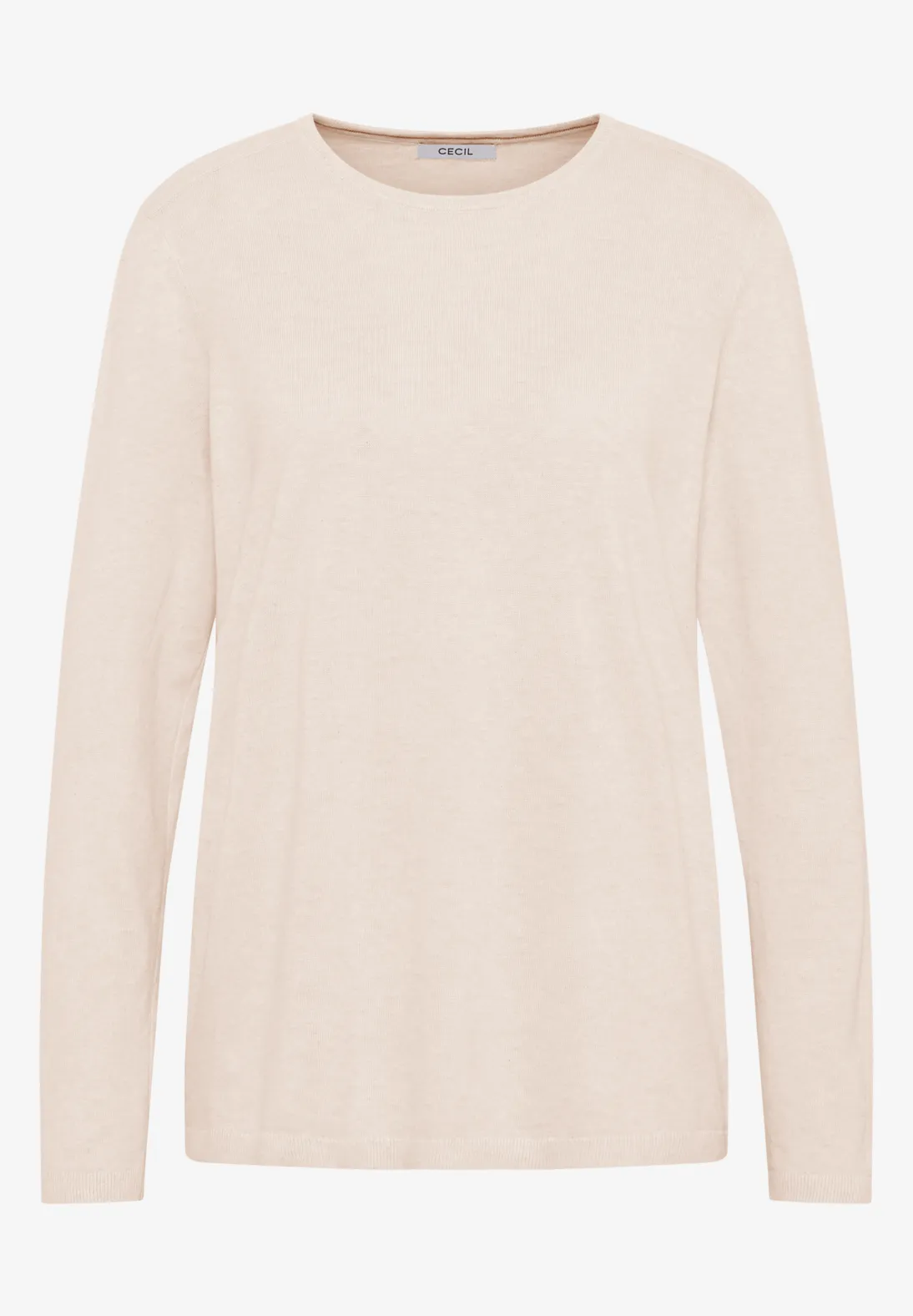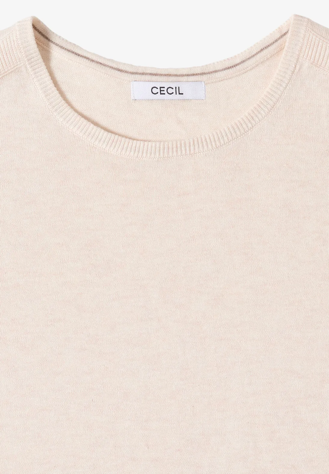 Tento základný dámsky pletený pulóver od značky CECIL sa vyznačuje klasickým okrúhlym výstrihom a jemným detailom na ramenách.