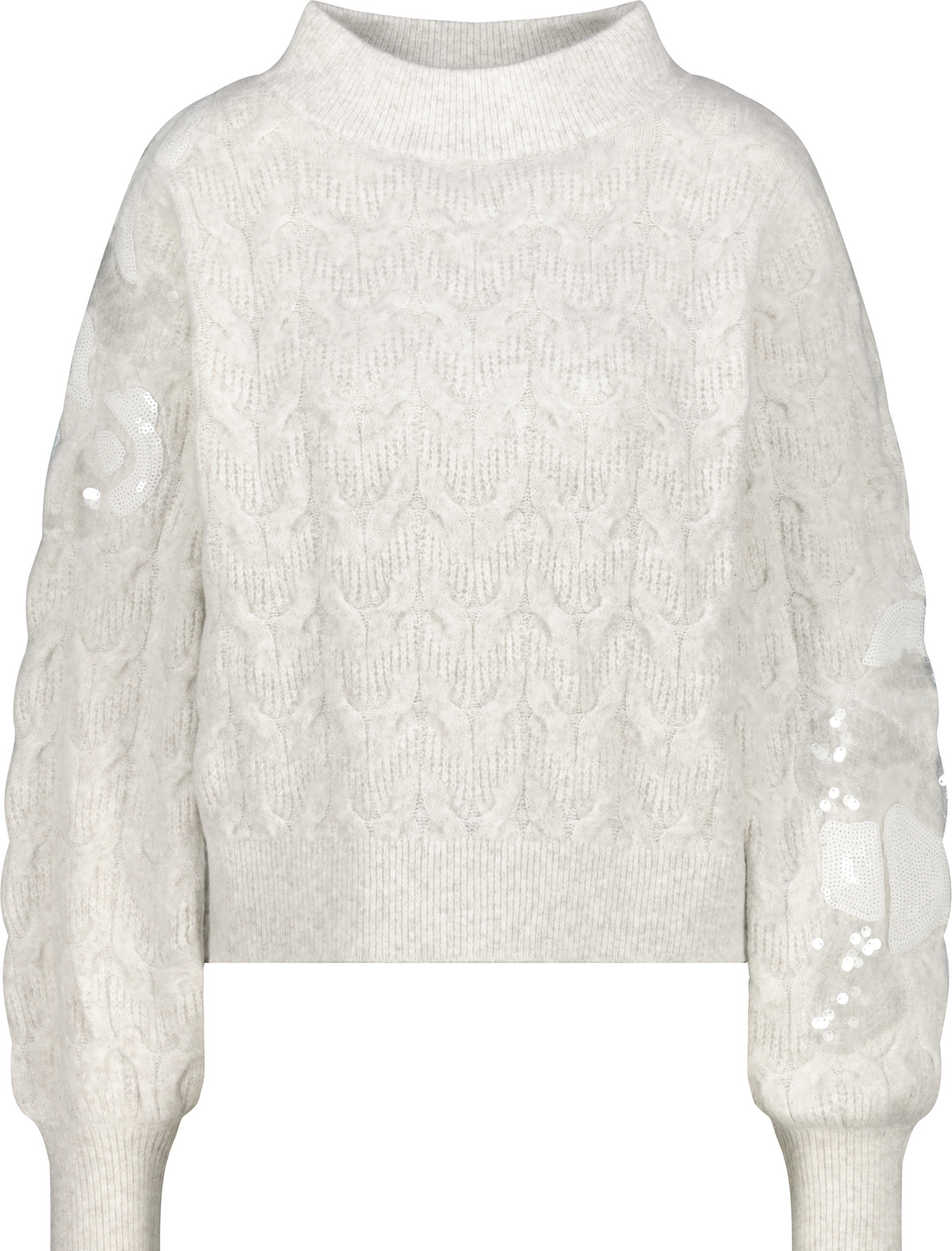 Luxusný pletený sveter vyrobený z vysoko kvalitnej vlnenej zmesi s copánkovým vzorom a flitrami pre nadčasovú eleganciu.