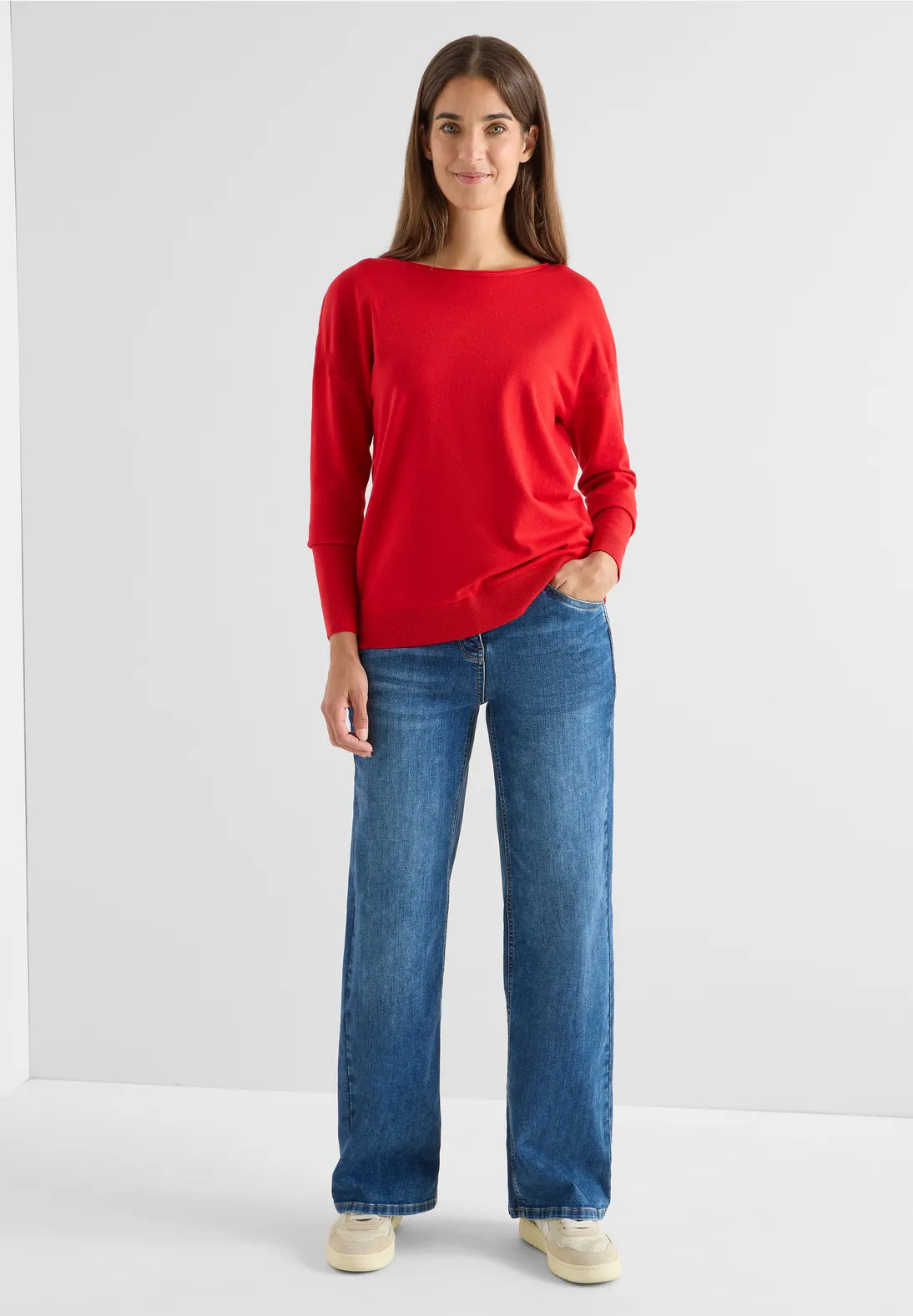Tento dámsky pletený sveter od CECIL s lodičkovým výstrihom a jemnými textúrovanými detailmi dodá vášmu outfitu štýlový nádych.