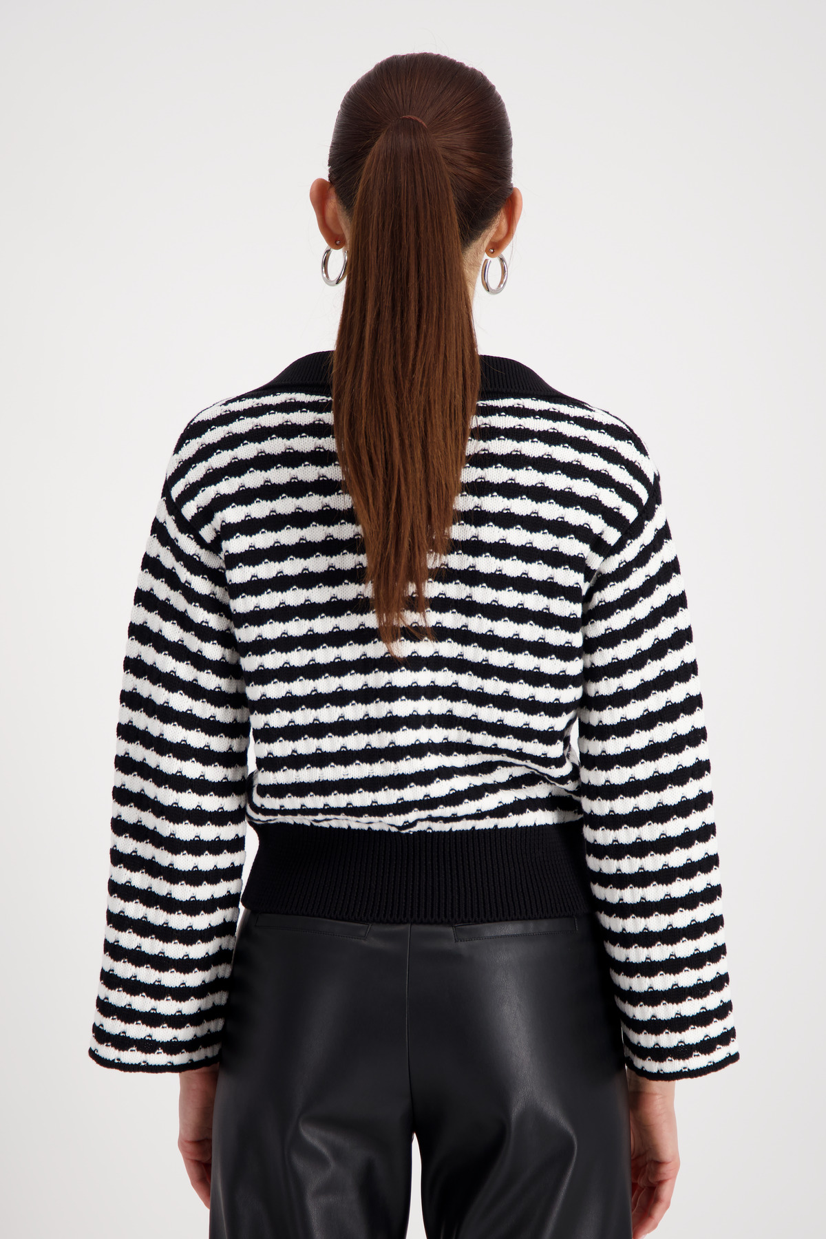 Objavte elegantný polo sveter zo 100% bavlny s textúrovanými pruhmi – moderný dizajn sa stretáva so štýlovými detailmi pohodlia.