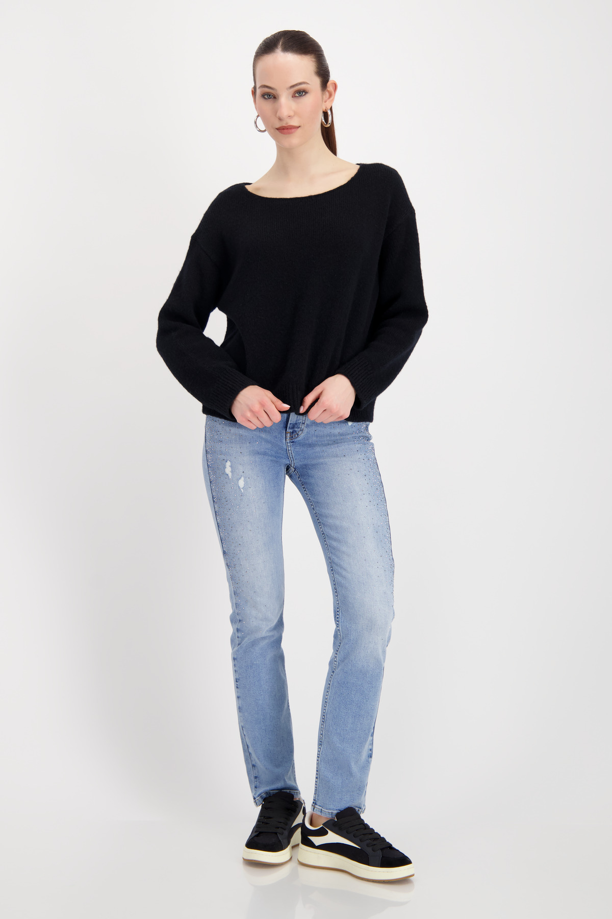 Objavte sveter vyrobený z vysoko kvalitnej zmesi vlny, s nadýchanou priadzou, oversize strihom a lodičkovým výstrihom ? pre štýlové chvíle pohodlia.