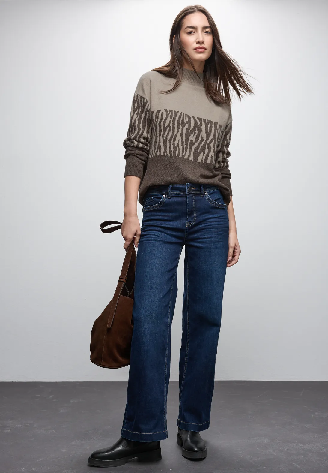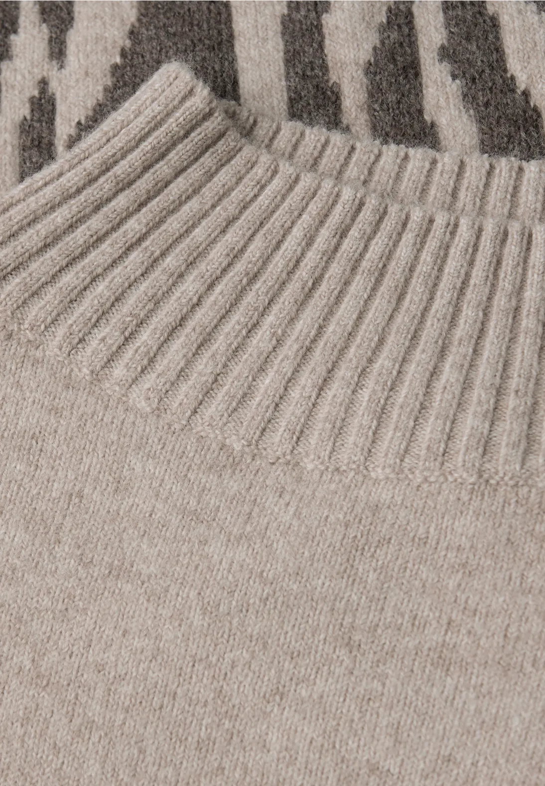 Tento dámsky pletený sveter od Street One s výrazným žakárovým vzorom v kombinácii farebných blokov určite upúta pozornosť.