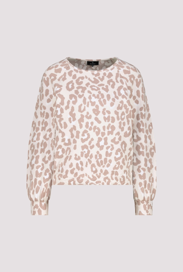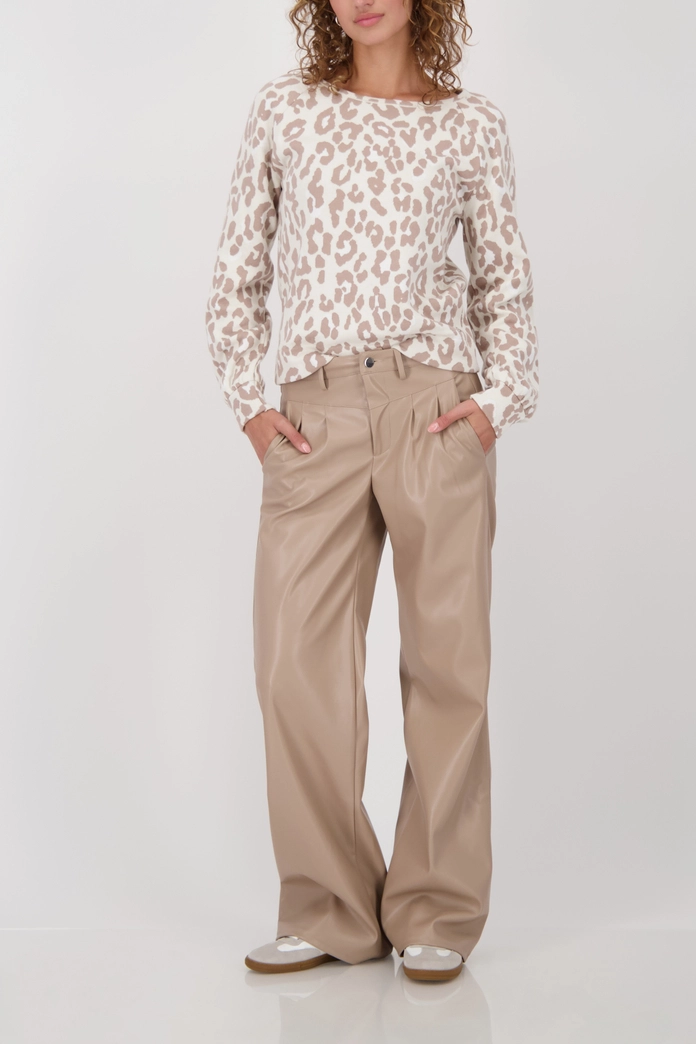 Zažite módny dojem s týmto svetrom s dlhým rukávom vyrobeným zo 100 % bavlny s fascinujúcou leopardou potlačou a pohodlným klasickým strihom.