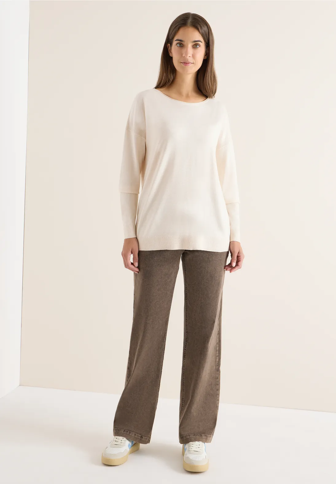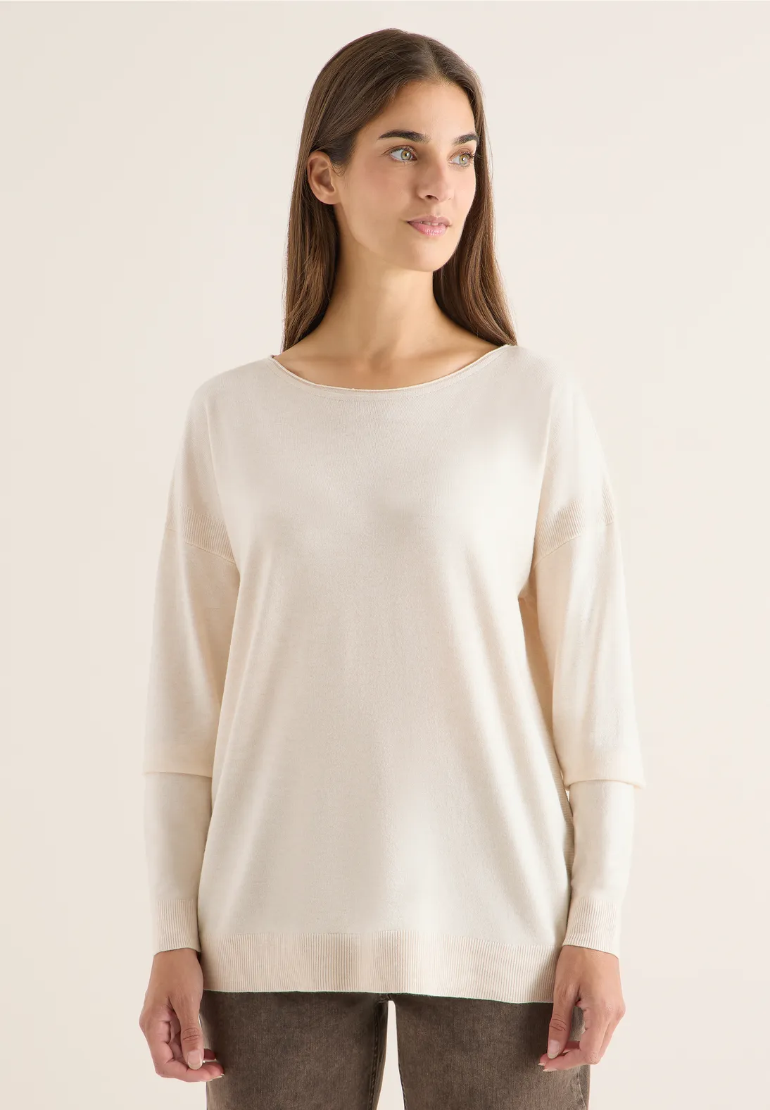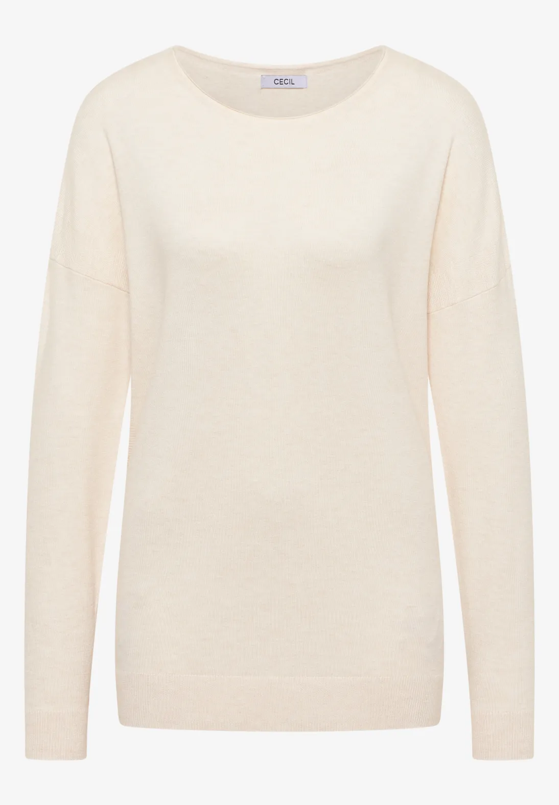 Tento dámsky pletený sveter od CECIL s lodičkovým výstrihom a jemnými textúrovanými detailmi dodá vášmu outfitu štýlový nádych.