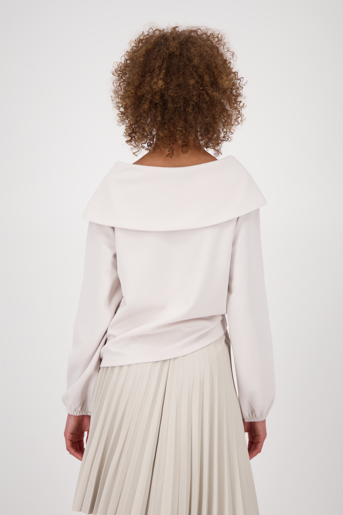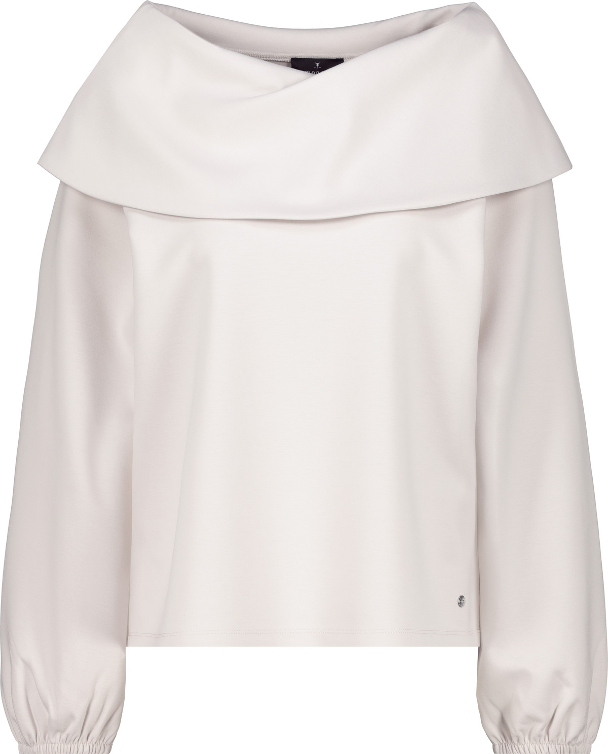 Preložený výstrih Carmen dodáva bežnému strihu ženský nádych, zatiaľ čo elastické manžety rukávov zaisťujú pohodlné nosenie.