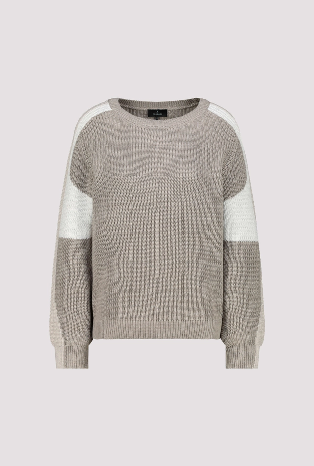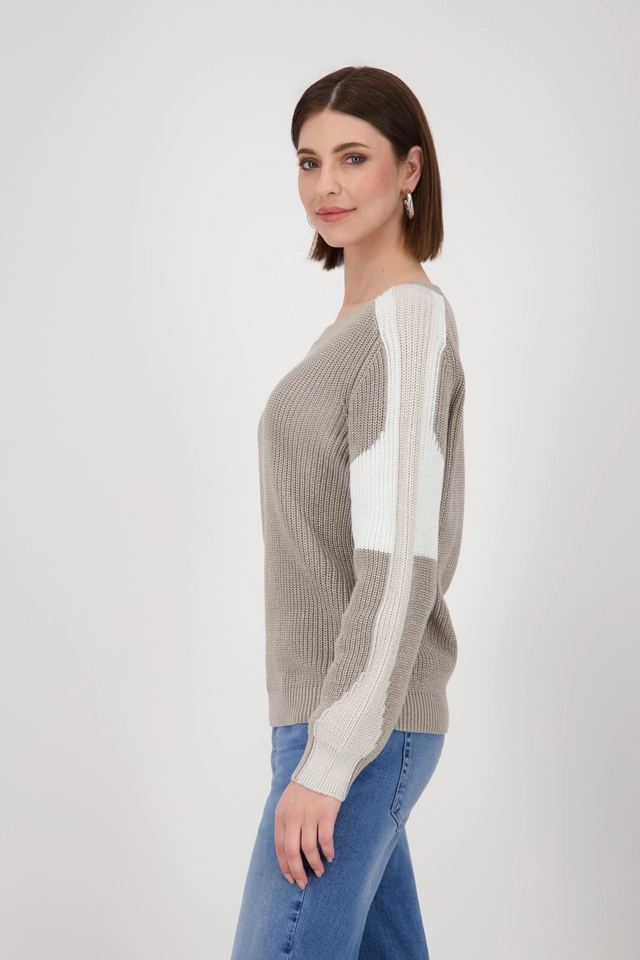 Pletený sveter z vysoko kvalitnej bavlnenej zmesi s trblietavým lurexom, moderným farebným prepojením a trblietavou nášivkou s logom na chrbte.