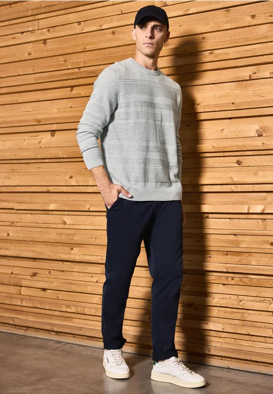 Tento sveter od Street One MEN mu dodáva módny nádych vďaka jemným textúrovaným pruhom. Okrúhly výstrih, rebrované manžety a mäkká bavlna z neho robia ideálneho spoločníka na každý deň.