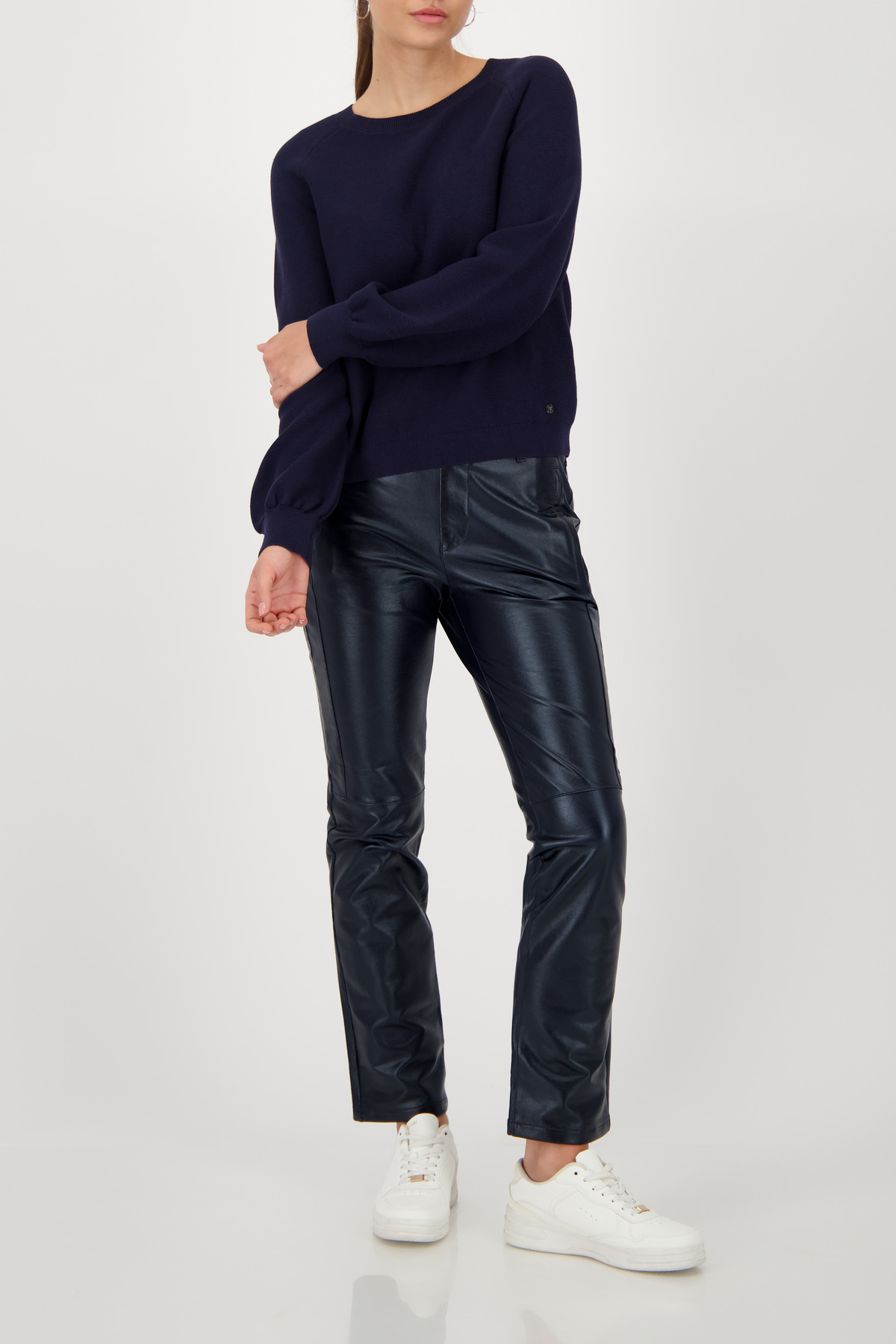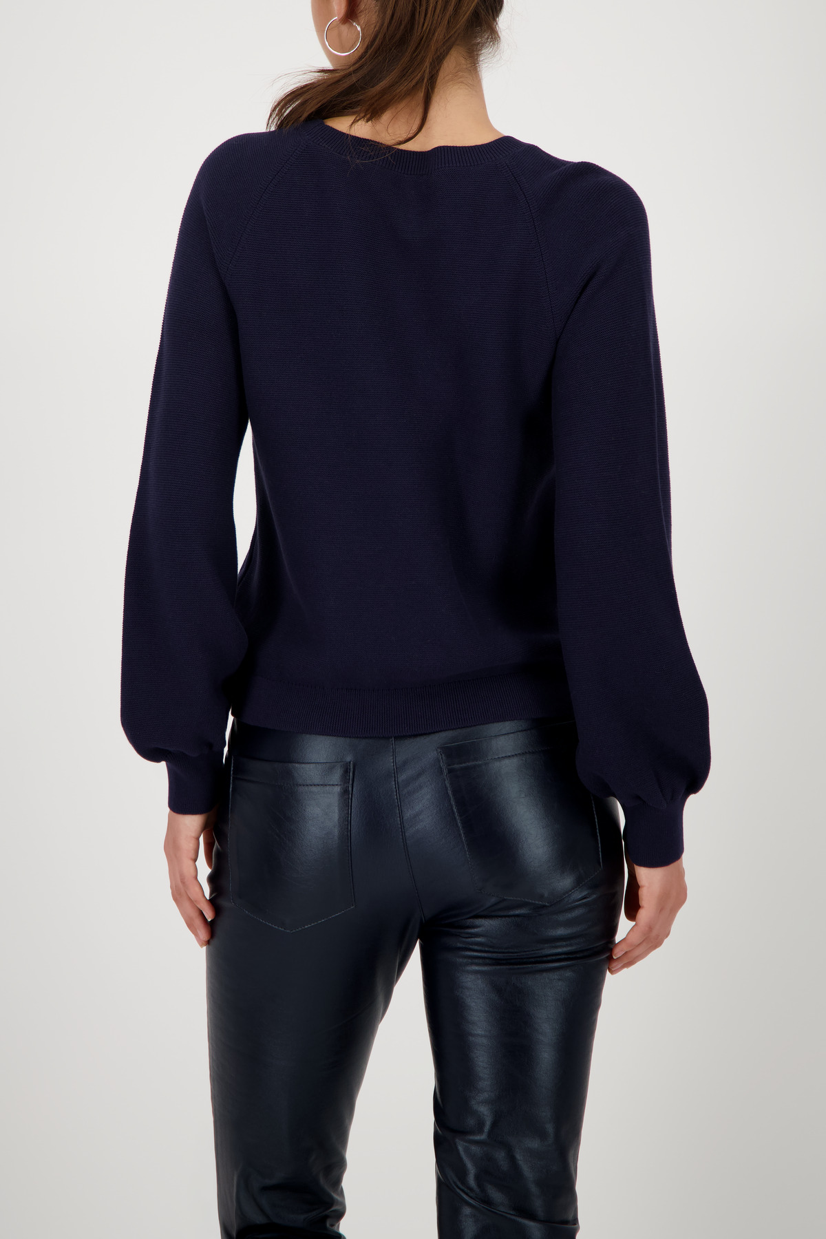 Pletený sveter zo 100 % bavlny s okrúhlym výstrihom, dlhými rukávmi a klasickým strihom.