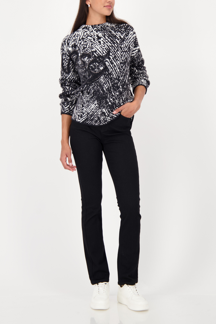 Štýlový pletený sveter z padavej viskózy so vzorom rybej kosti a kamienkami. Nevyhnutný kúsok!