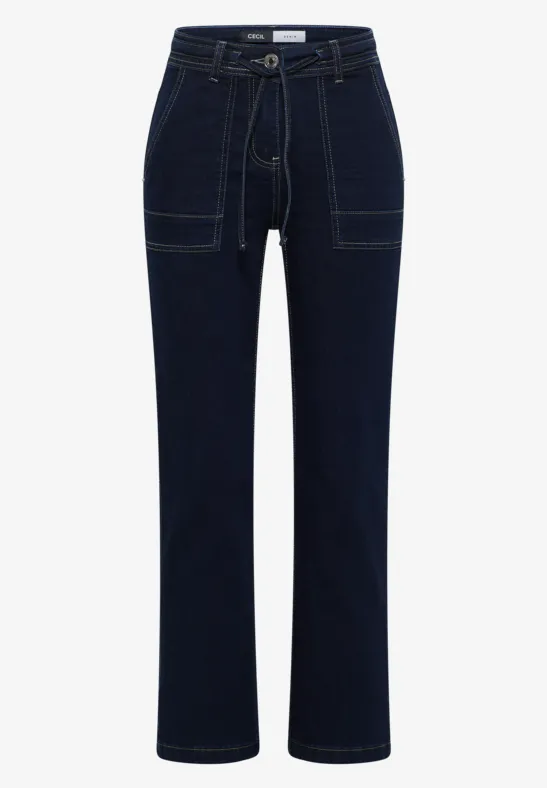 Dámske džínsy s nízkym strihom v štýle Toronto od značky CECIL zaujmú svojím priliehavým strihom, vysokým pásom a módnym rozšíreným strihom nohavíc.