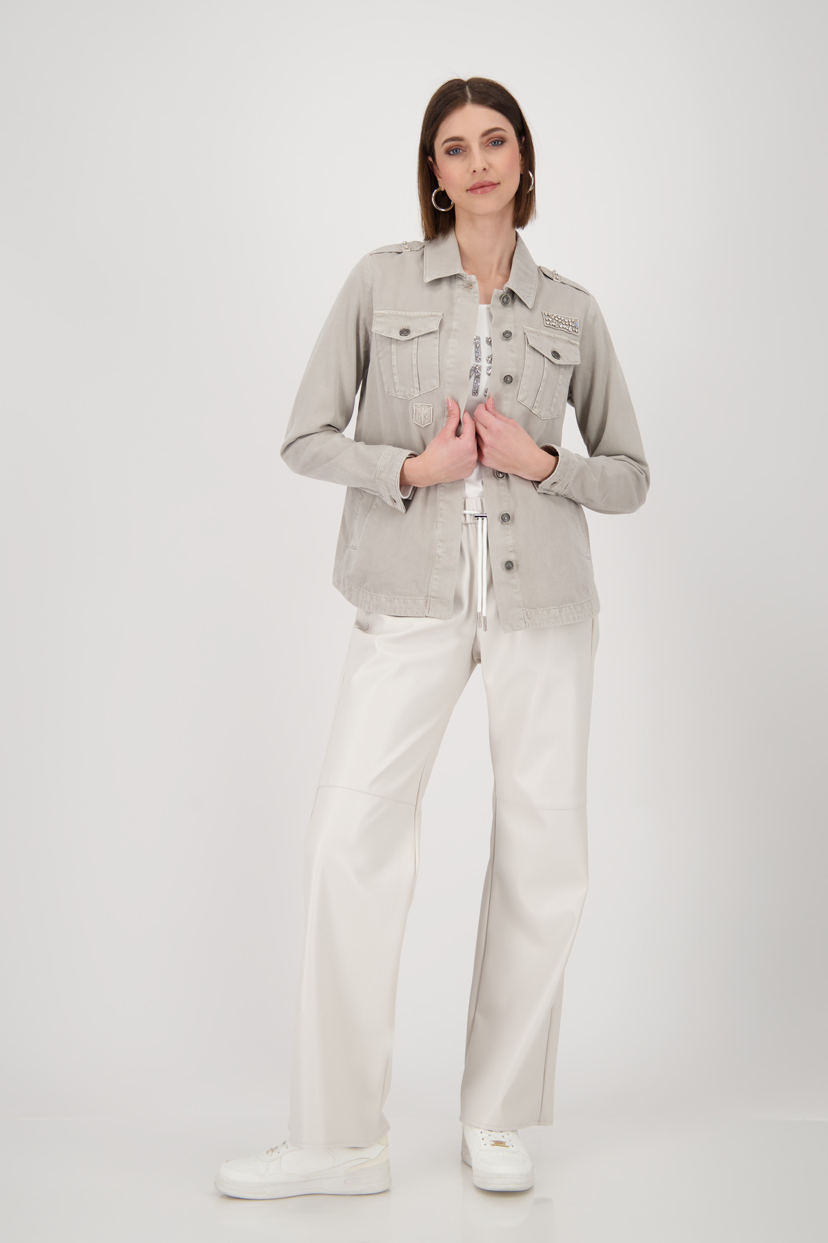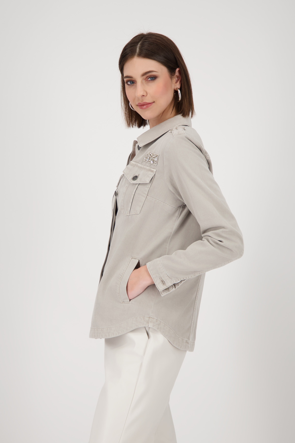 Klasická džínsová košeľa zo 100 % bavlny v klasickom strihu s košeľovým golierom, náramkami a kamienkami pre moderný vzhľad.