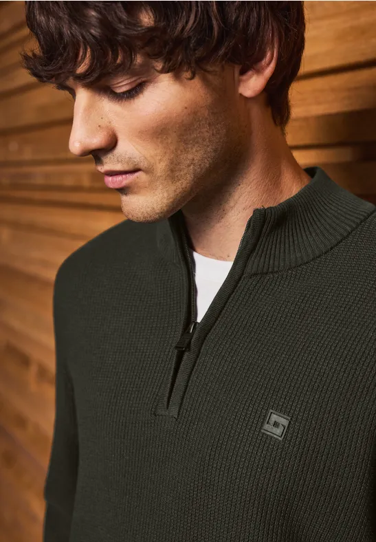 Tento pletený sveter od Street One MEN sa vyznačuje klasickým rolákom s jemnou textúrou a vysokým komfortom.