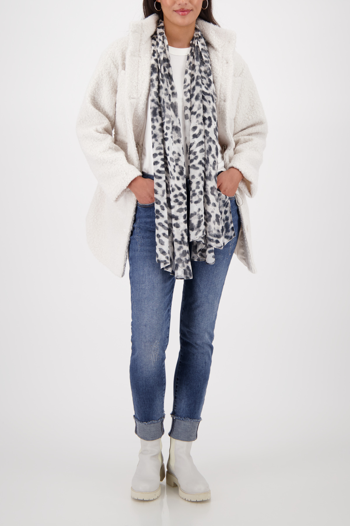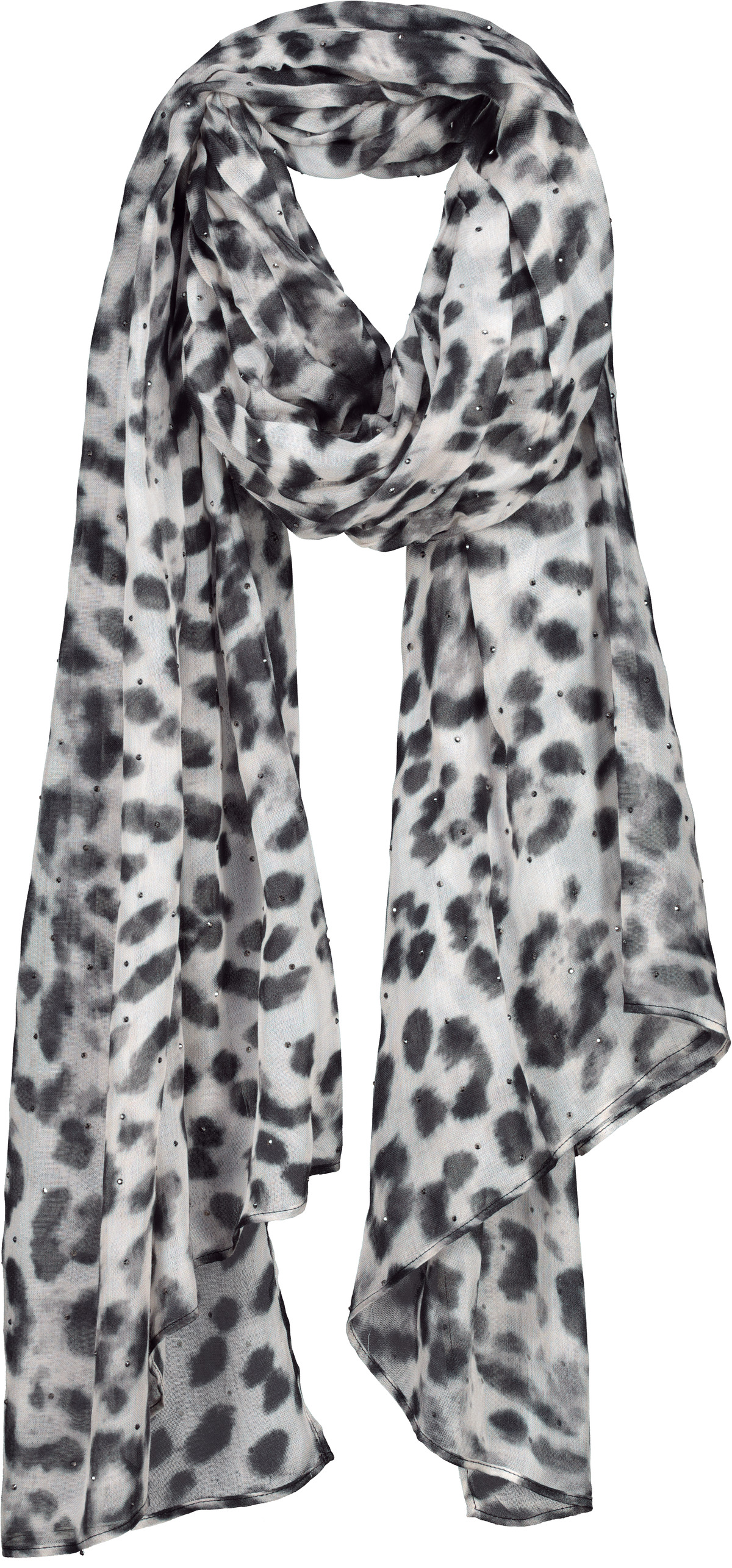 Táto módna šatka vyrobená z vlnitej viskózy zaujme výrazným celoplošným leopardím vzorom zdobeným kamienkami. Obdĺžnikový tvar umožňuje všestranné možnosti stylingu – či už ležérne okolo krku, ako čelenku alebo ako dekoratívny doplnok.