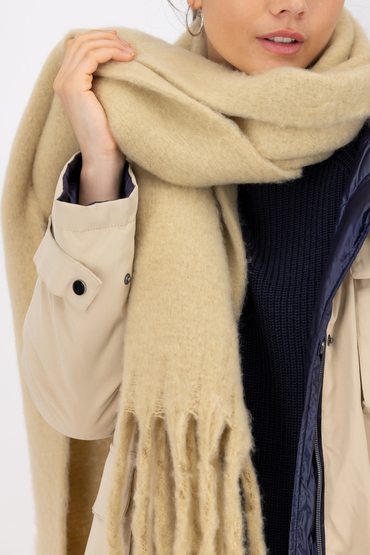 Strapcová šatka obdĺžnikového tvaru s nadýchaným pocitom a veľkorysými rozmermi: 180 x 40 cm – elegantný spoločník.