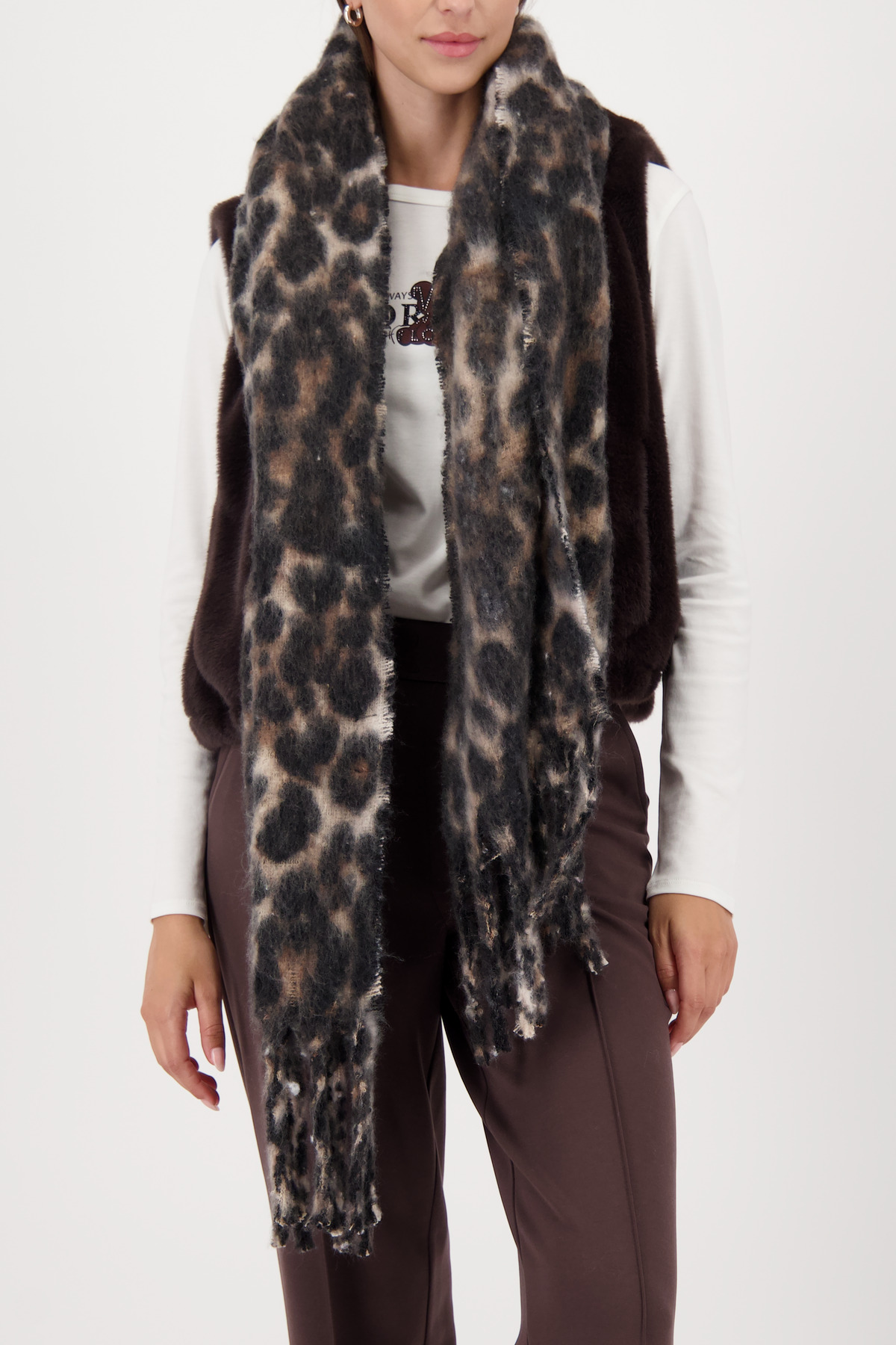 Táto nadýchaná šatka so strapcami na koncoch a leopardím vzorom ponúka nielen vysoké pohodlie pri nosení, ale aj moderný vzhľad. |
