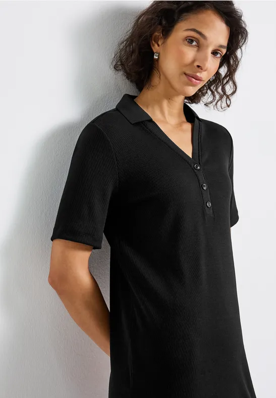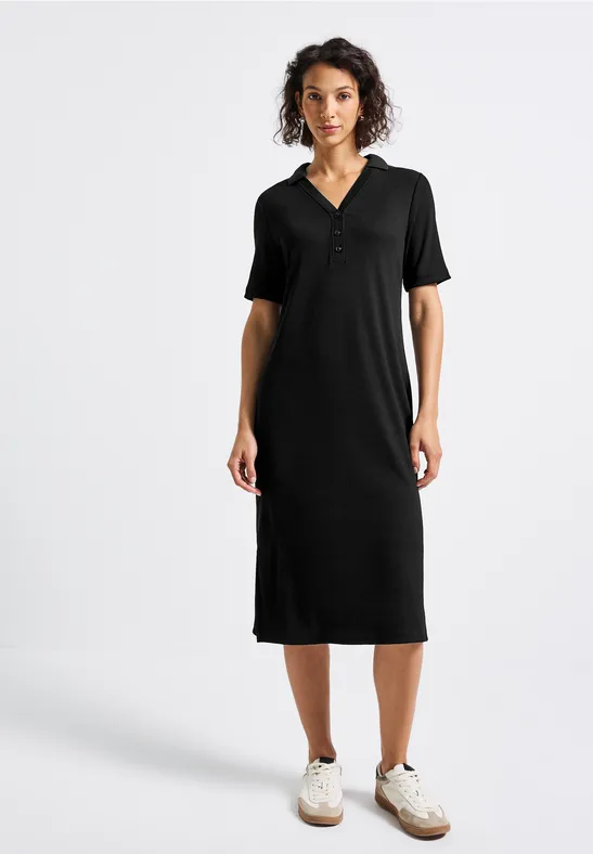 Tieto jednofarebné polo šaty od Street One pre ženy zaujmú svojou lichotivou rebrovanou textúrou a modernou midi dĺžkou.