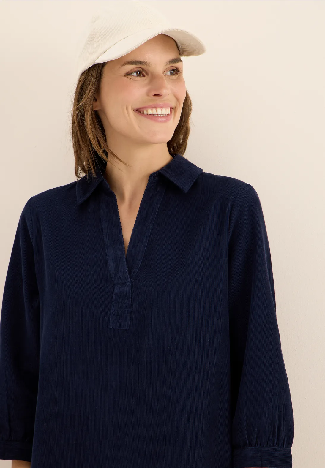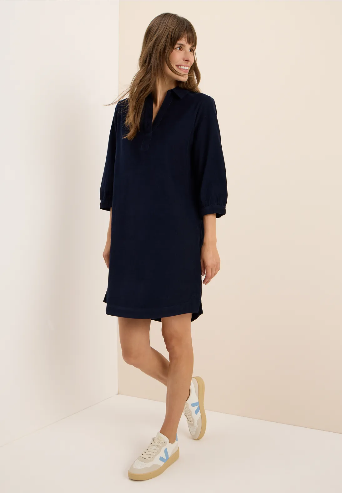 Tieto dámske manšestrové šaty od značky CECIL po kolená zaujmú svojou kvalitou bavlny a pôvabným rozdeleným výstrihom.