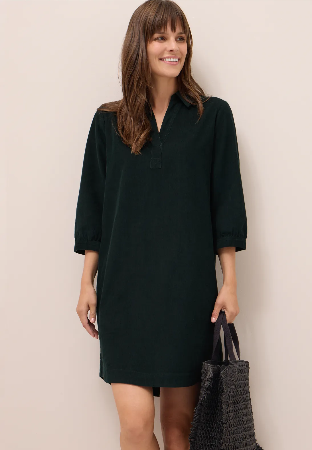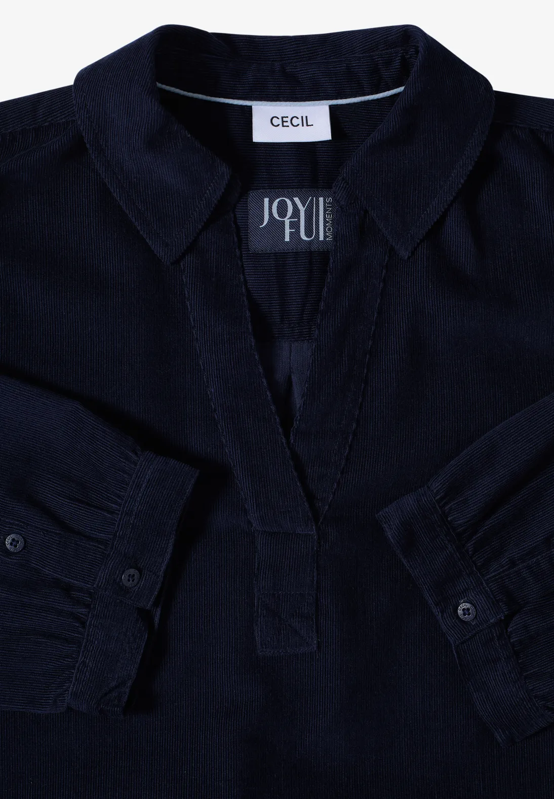 Tieto dámske manšestrové šaty od značky CECIL po kolená zaujmú svojou kvalitou bavlny a pôvabným rozdeleným výstrihom.