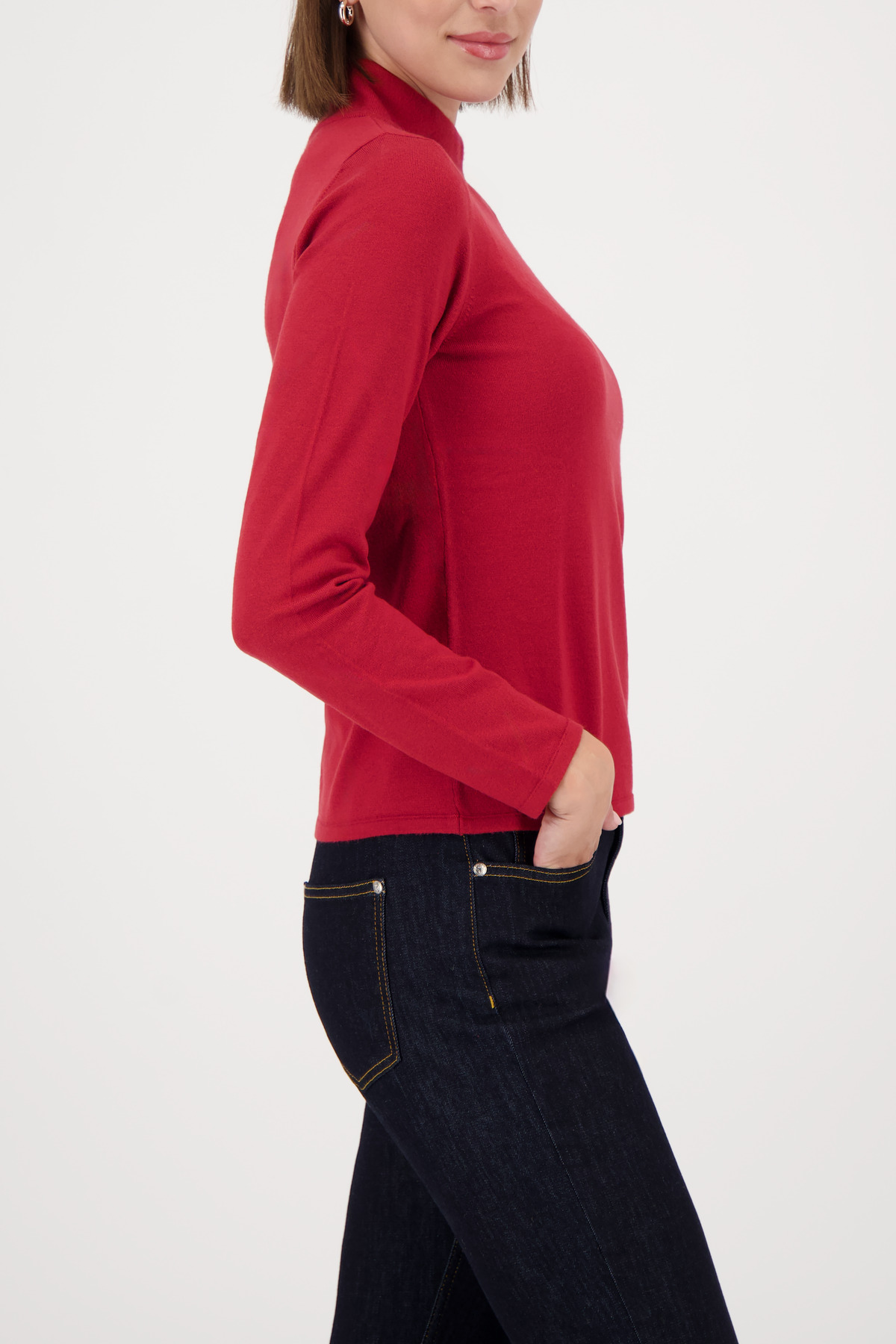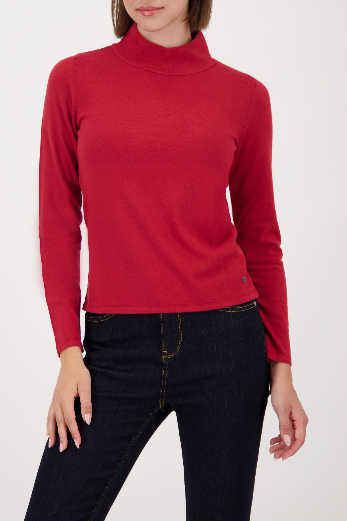 Vychutnajte si štýlový základný sveter zo splývavej viskózy s jemným pocitom a elegantným stojačikom.