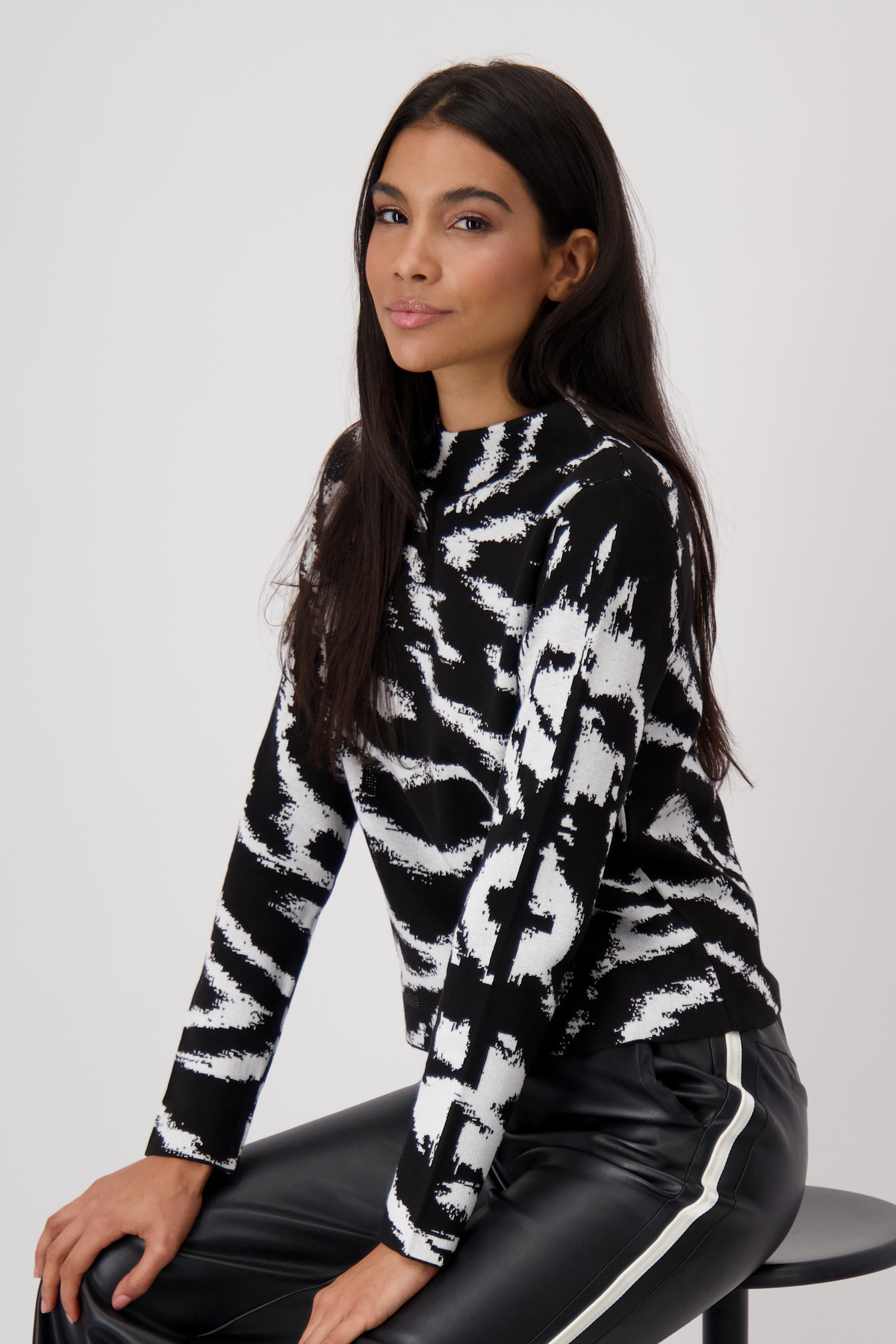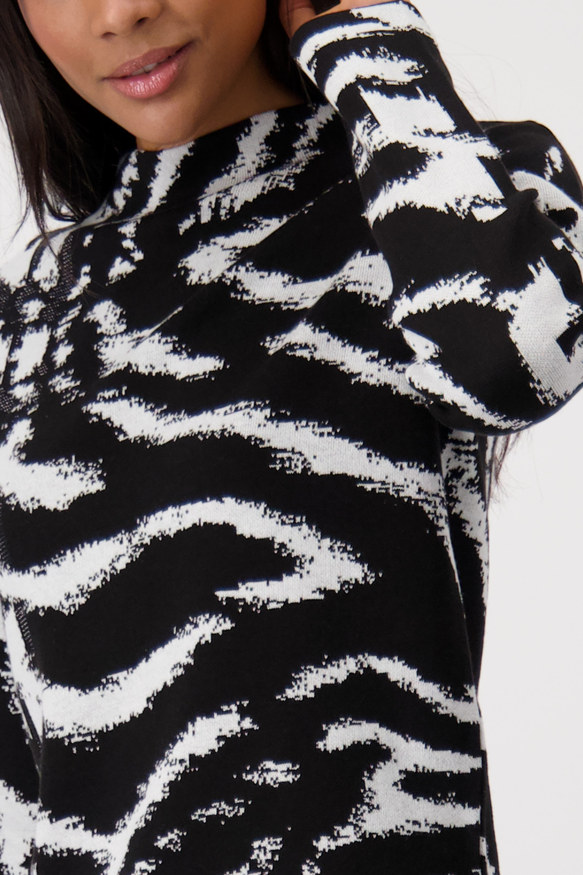 Pletený sveter s tigrím vzorom zaujme kvalitnou zmesou bavlny a kamienkami tón v tóne.