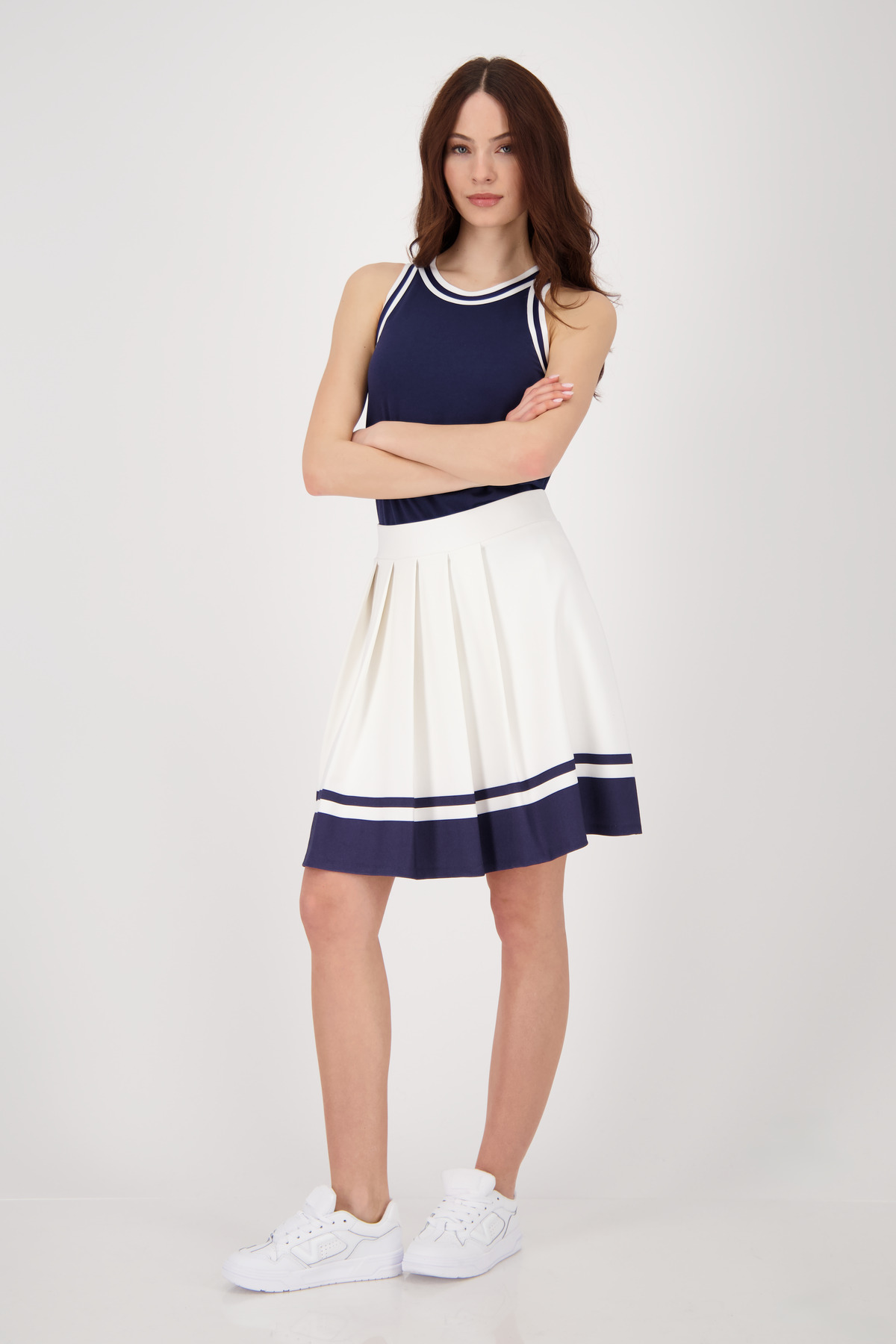 Štýlová tenisová sukňa s pruhmi záujme svojím elastickým materiálom a pohodlným elastickým pásom.