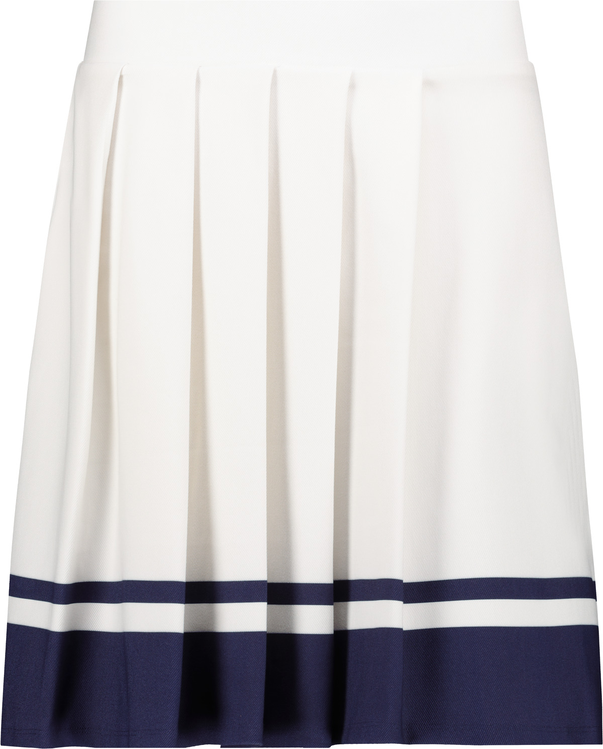 Záhyby vpredu dodávajú sukni športový vzhľad.
