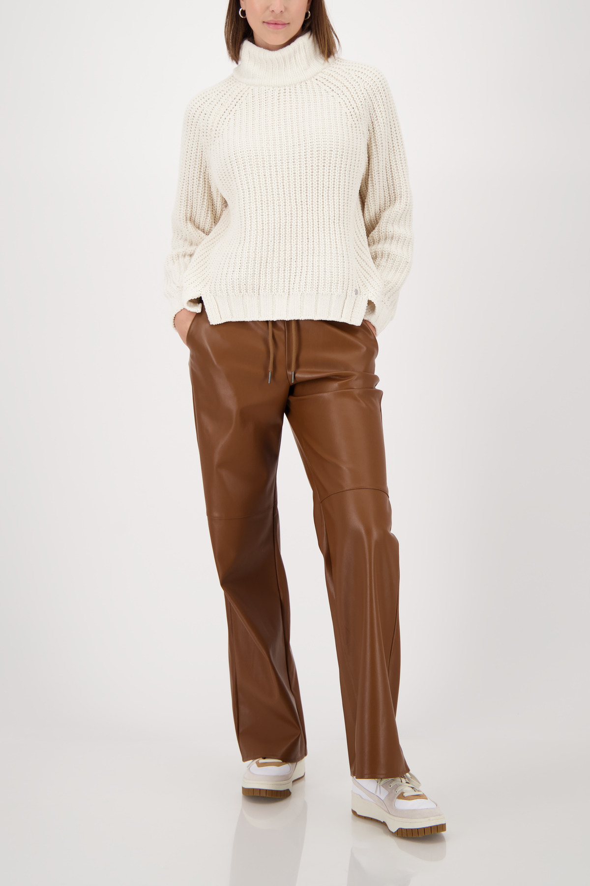 Tento pletený sveter vyrobený z mäkkej ženilkovej priadze zaujme svojím trendy perleťovým strapcovým vzorom a zaručí útulný pocit.