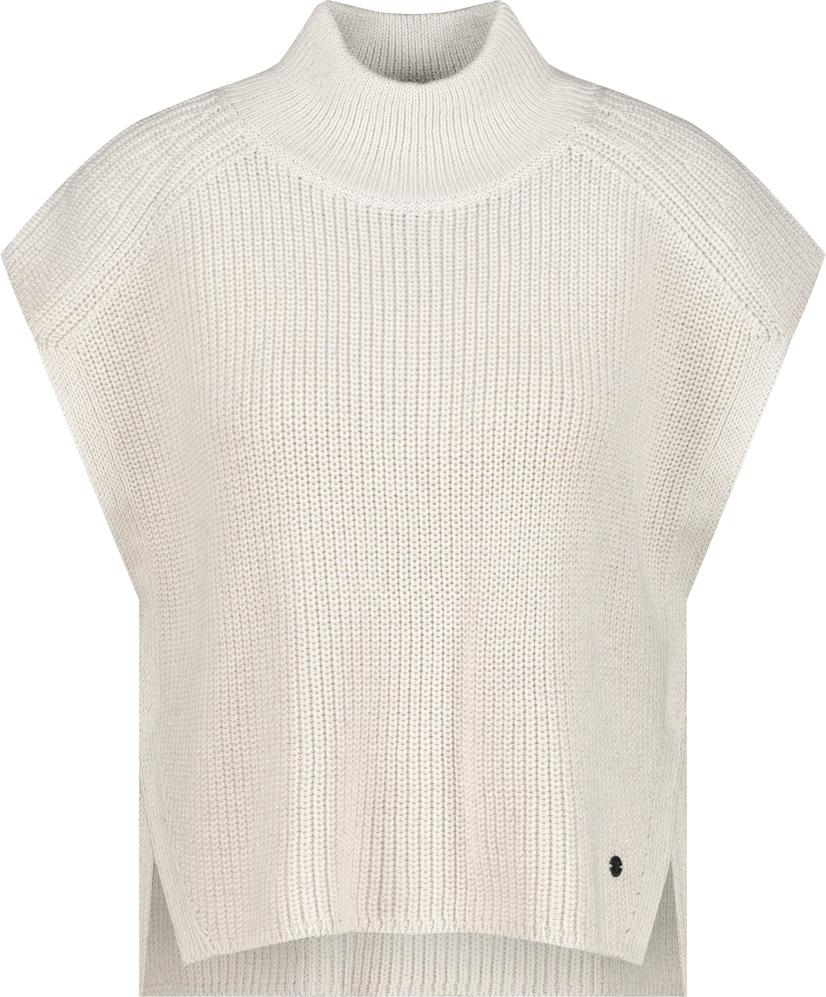 Elegantný pletený pulóver vyrobený z vysoko kvalitnej bavlnenej zmesi s lesklým lurexom a bočnými rozparkami pre nadčasový štýl.