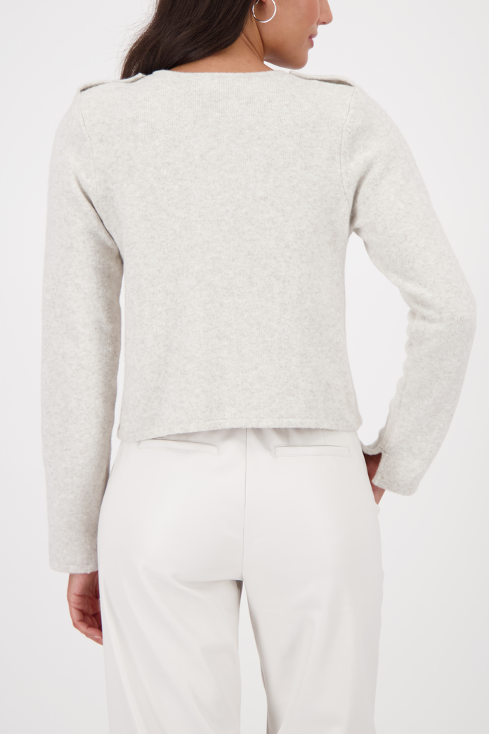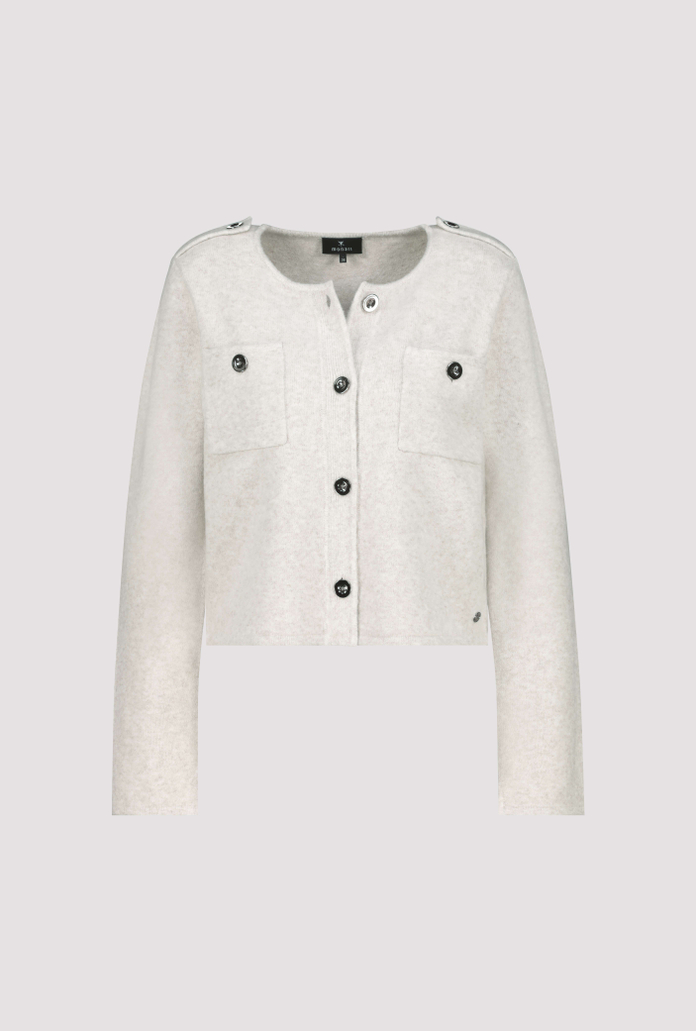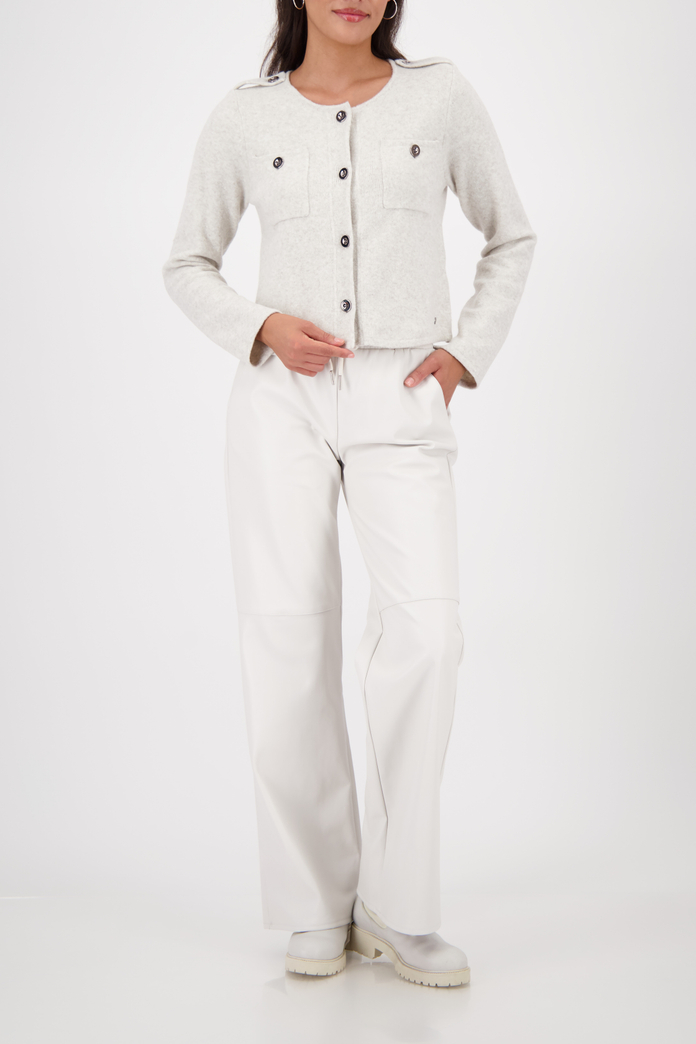 Elegantný kardigan vyrobený z vysoko kvalitnej vlnenej zmesi s náramkami a praktickými náprsnými vreckami – ideálny na každú príležitosť.