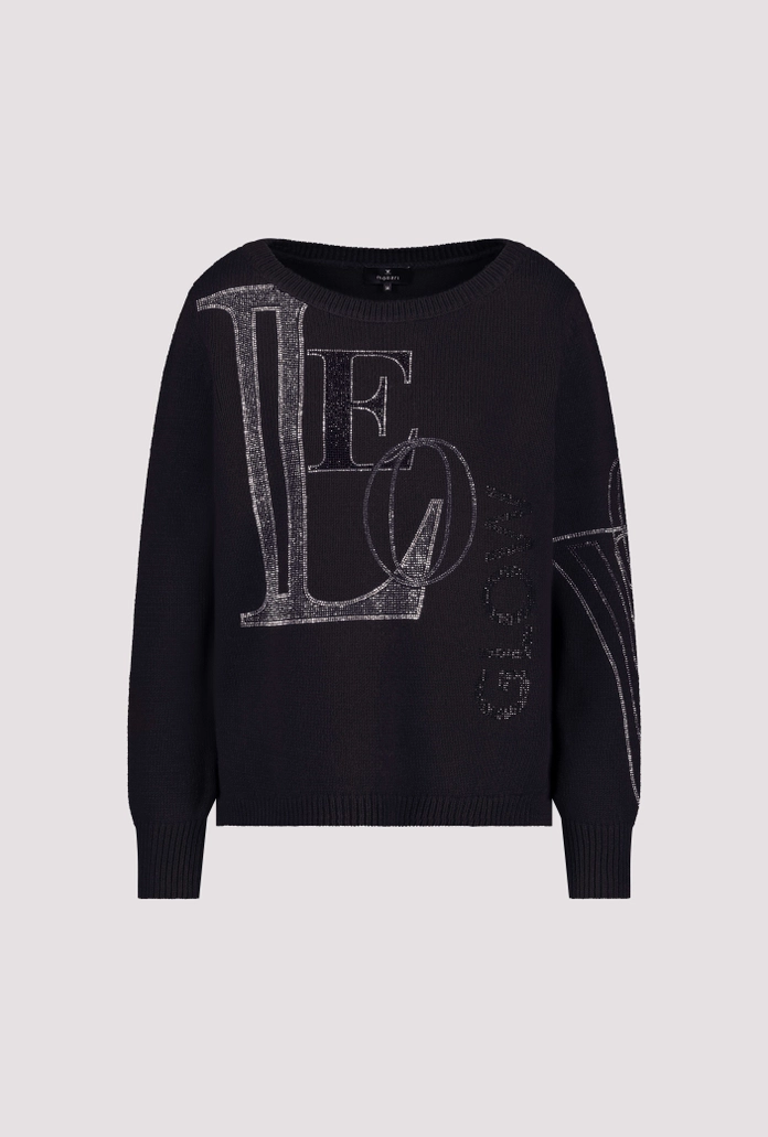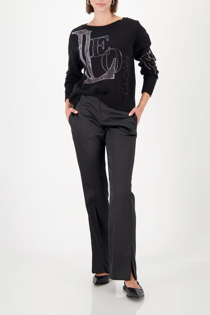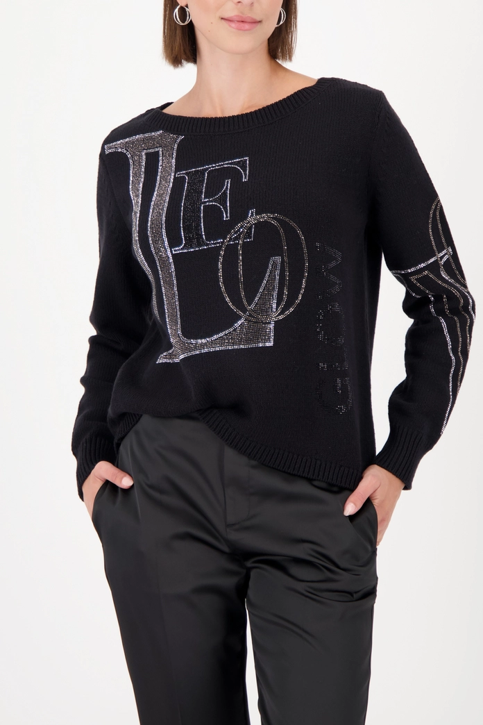 Elegantný pletený sveter vyrobený z vysoko kvalitnej bavlny s intarzívnym vzorom a trblietavými kamienkami – perfektný spoločník.