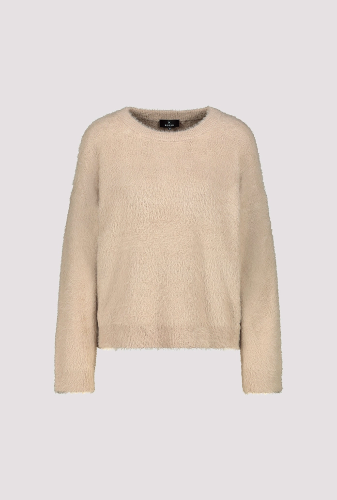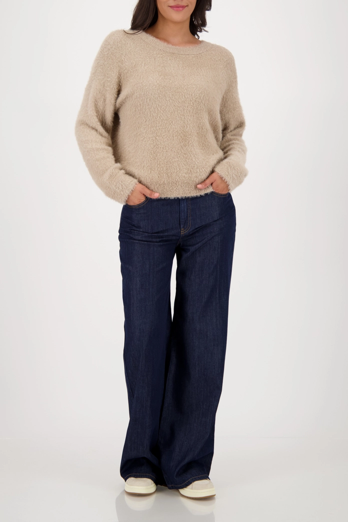 Objavte tento štýlový sveter vyrobený z vysoko kvalitnej bavlnenej zmesi s mäkkým pocitom, zníženými ramenami a okrúhlym výstrihom.