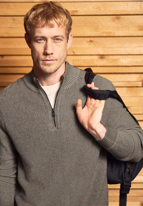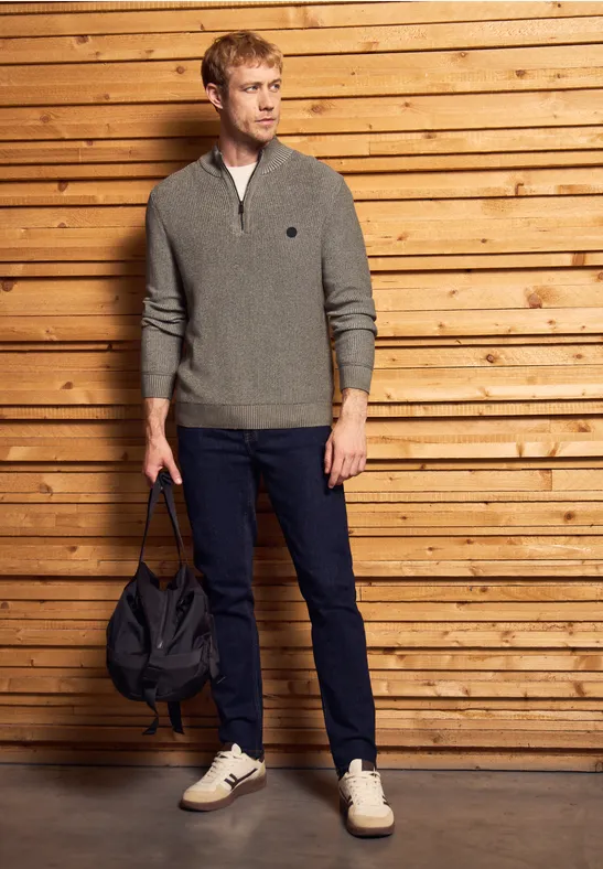 Tento pletený sveter od Street One MEN má športový vzhľad s rolákom a zipsom. Jemná úpletová textúra a čistá bavlna ponúkajú pohodlné nosenie. Ideálny pre ležérny štýl!