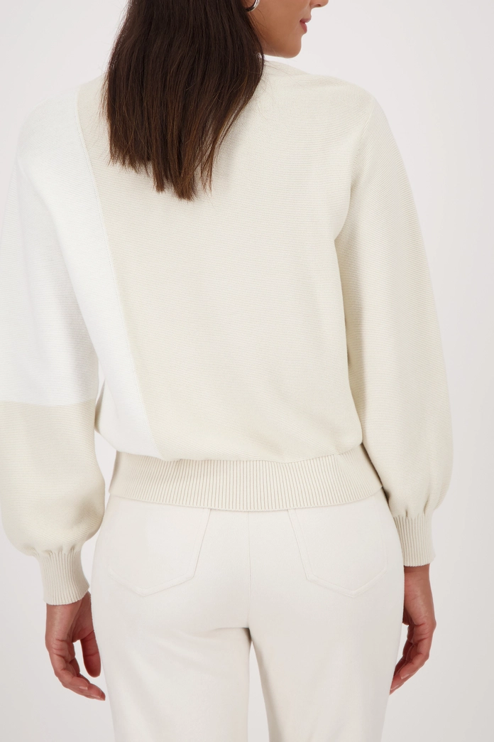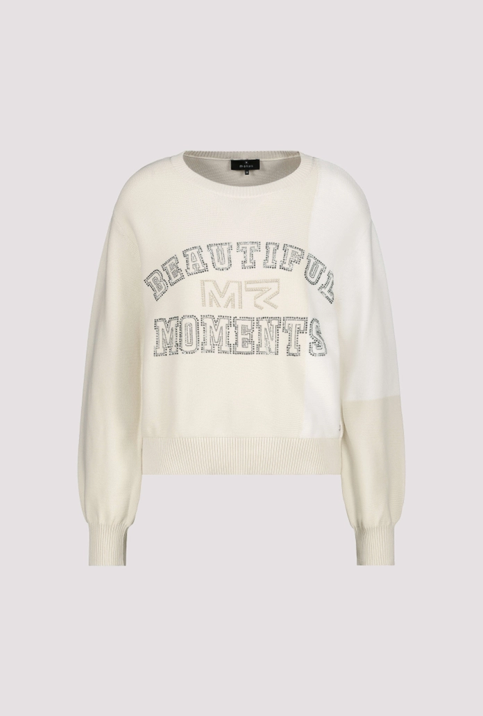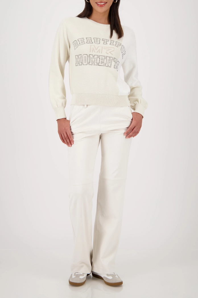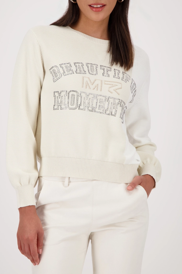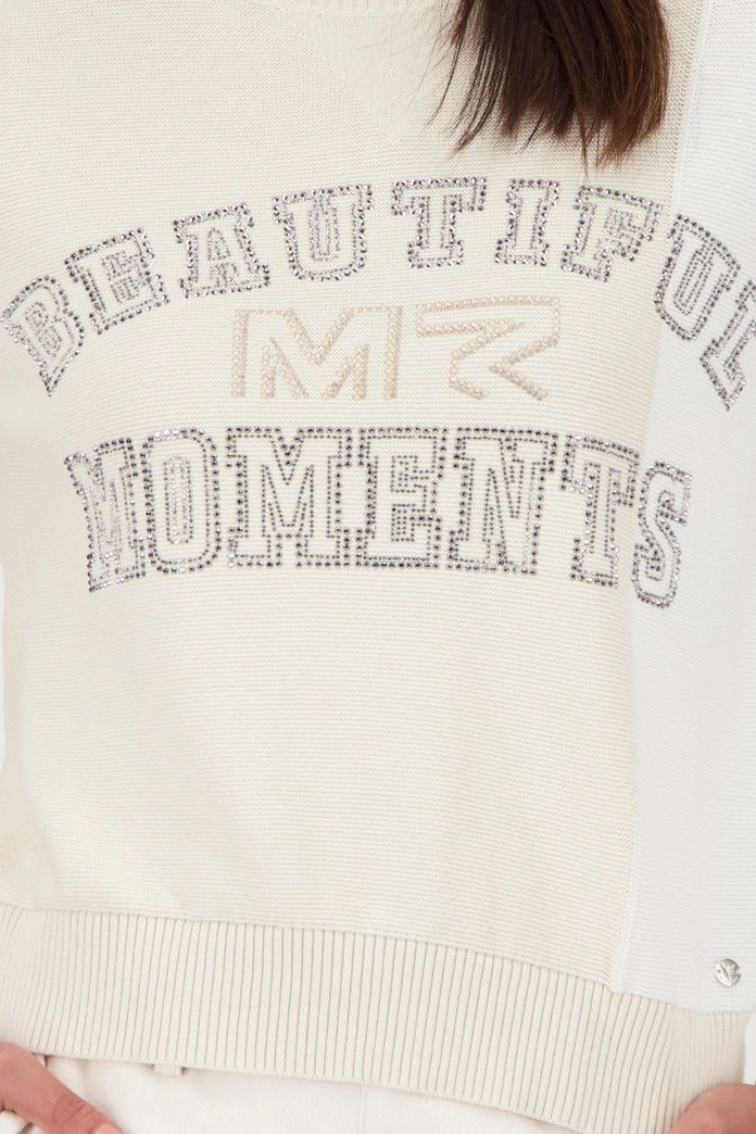 Štýlový sveter v jednofarebných farbách vyrobený zo 100 % bavlny s trblietavými kamienkami, ležérne spustenými ramenami a elegantným okrúhlym výstrihom.