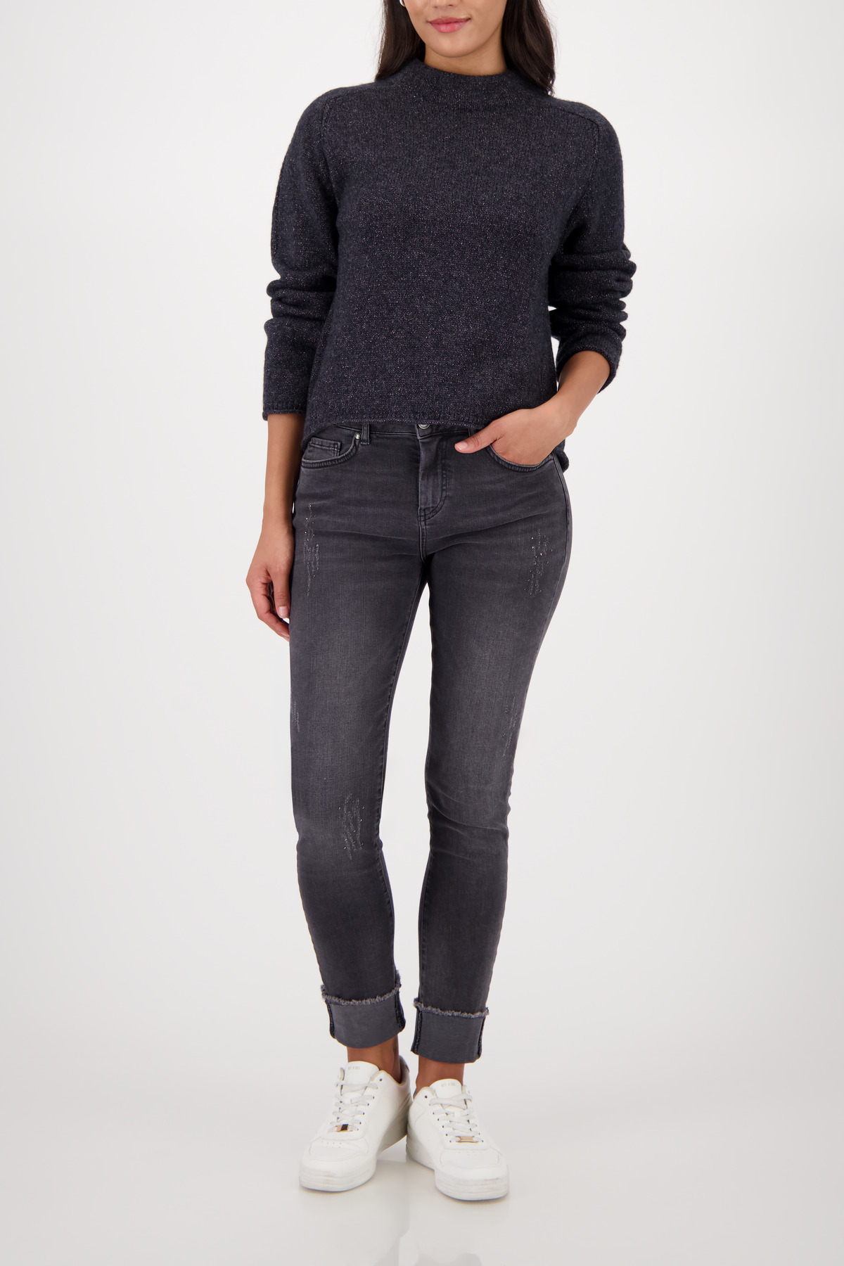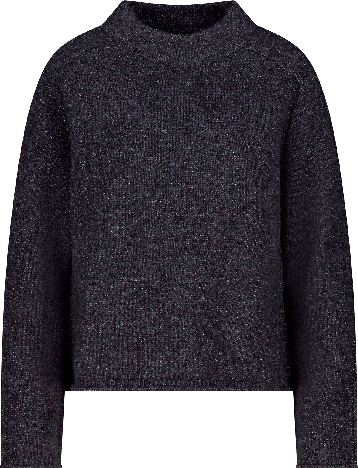 Štýlový pletený sveter vyrobený z vysoko kvalitnej bavlny s lesklým lurexom. Elegantný zrolovaný lem vytvára sofistikovaný vzhľad.