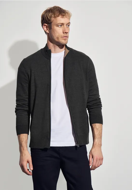 Tento kardigan od Street One MEN zaujme svojím čistým dizajnom a kvalitou čistej bavlny. Stojatý golier, zips po celej dĺžke a rebrované manžety mu dodávajú športový a nadčasový nádych. Všestranný každodenný základný kúsok.