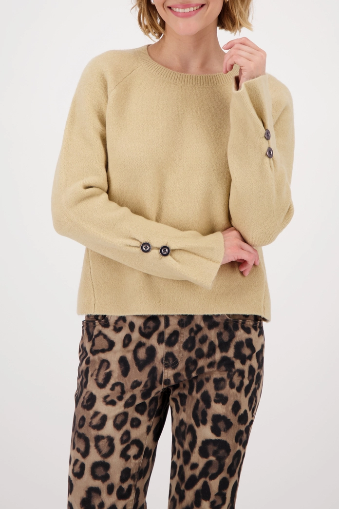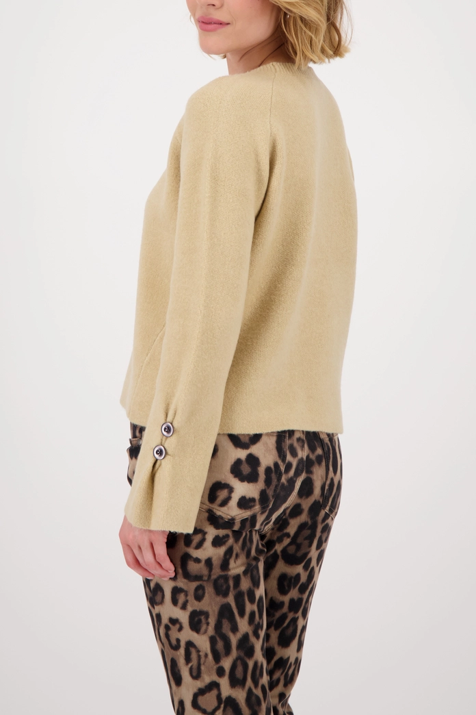 Elegantný sveter s dlhým rukávom vyrobený z vysoko kvalitnej bavlnenej zmesi, s elastickým materiálom, okrúhlym výstrihom a štýlovým zapínaním na gombíky pre moderný vzhľad.
