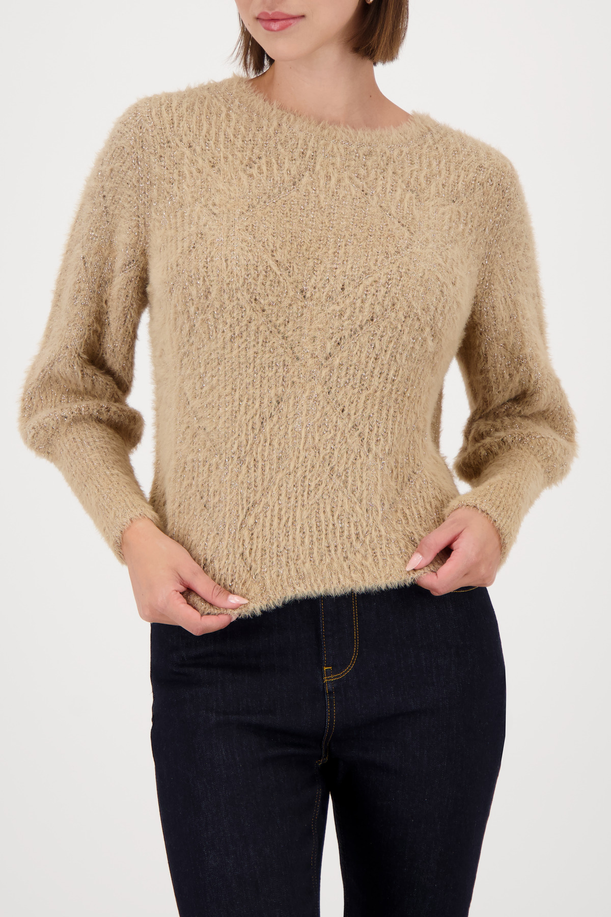 Elegantný pletený sveter zo splývavej viskózy a lesklého lurexu. Nadčasový spoločník pre ženy, ktoré dbajú o štýl.