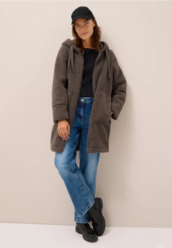Tento útulný plyšový kabát od značky CECIL pre ženy je skutočne skvelým kúskom na chladné dni. Mäkká a ľahká plyšová tkanina zaisťuje príjemné pohodlie, zatiaľ čo kapucňa so sťahovacou šnúrkou a vrecká na zips ponúkajú funkčné detaily. Obojsmerný zips dotvára celkový vzhľad a robí kabát obzvlášť praktickým.