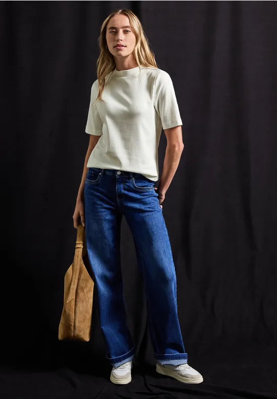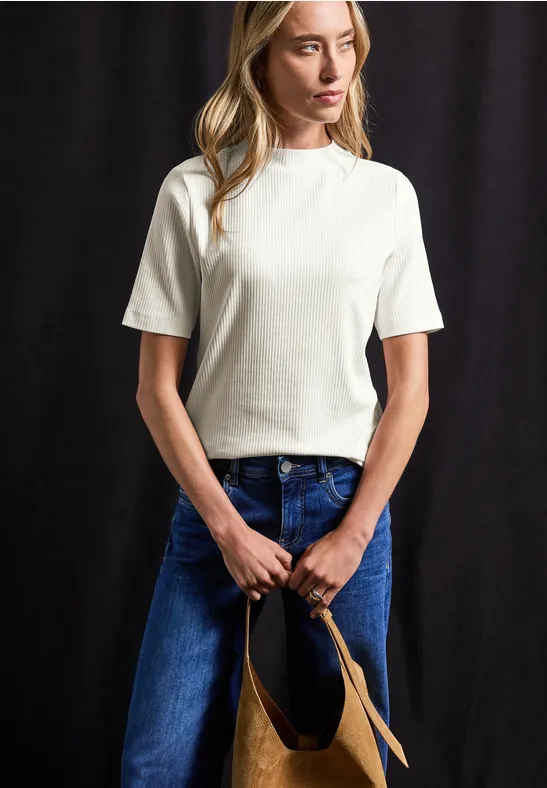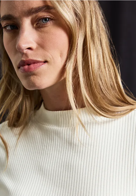 Toto dámske tričko od Street One kombinuje moderný rolák s jemnou rebrovanou textúrou.
