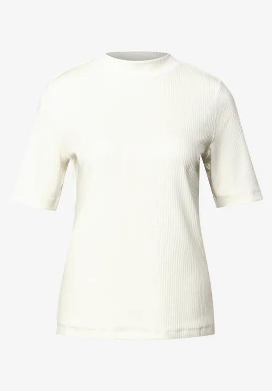 Toto dámske tričko od Street One kombinuje moderný rolák s jemnou rebrovanou textúrou.