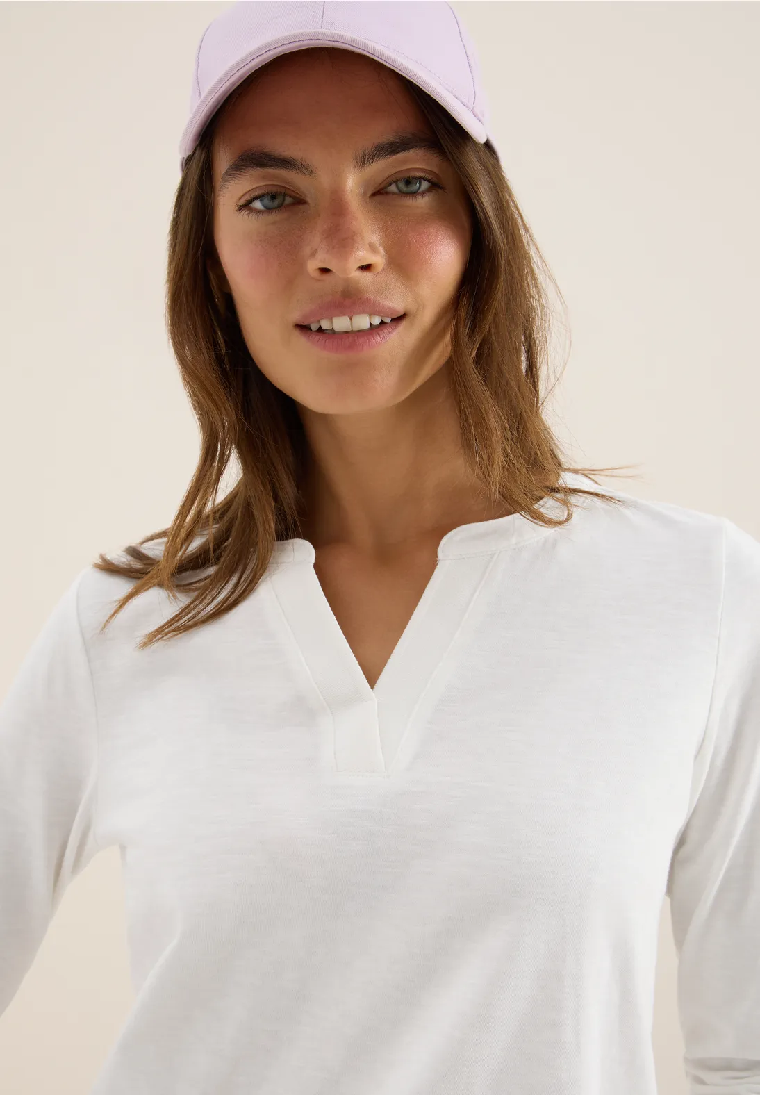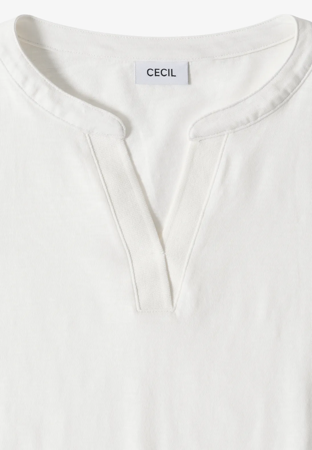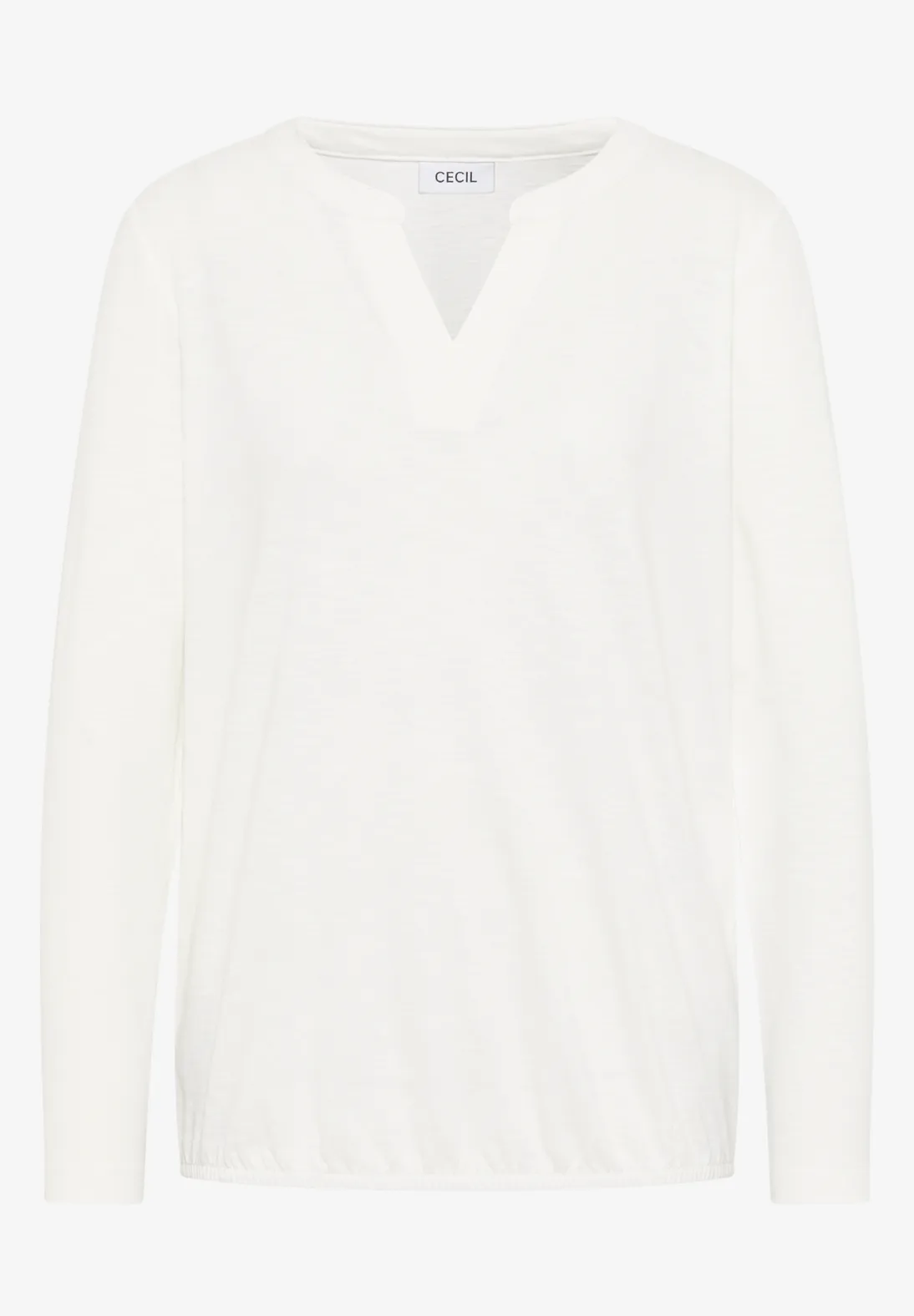 Táto dámska tunika od značky CECIL má klasický rozdelený výstrih, dlhé rukávy a elastický lem pre ležérny strih.