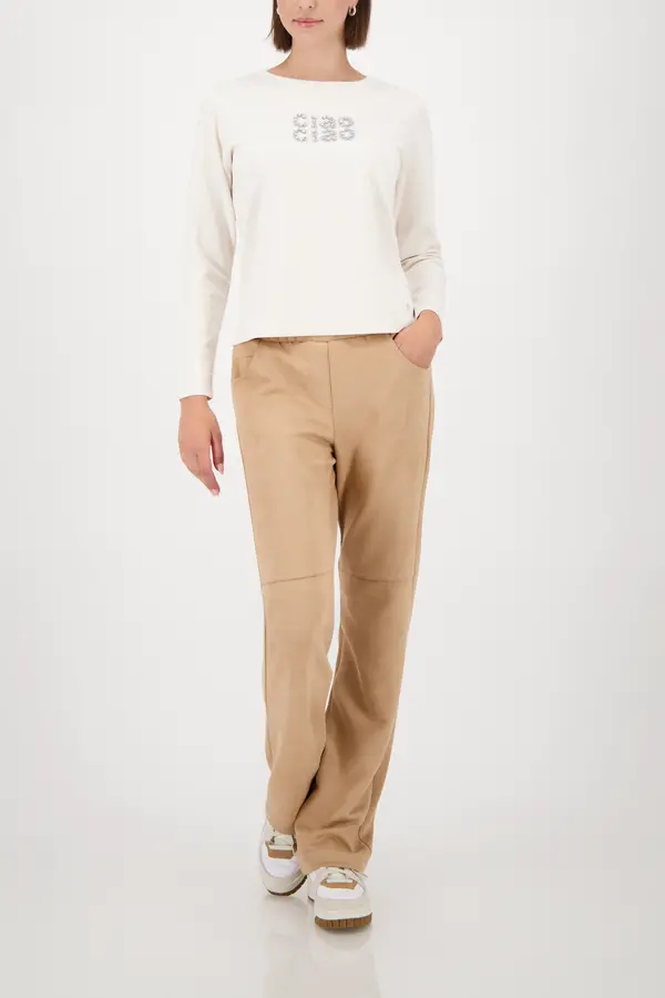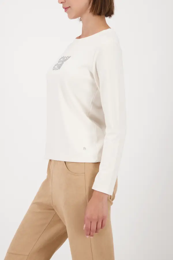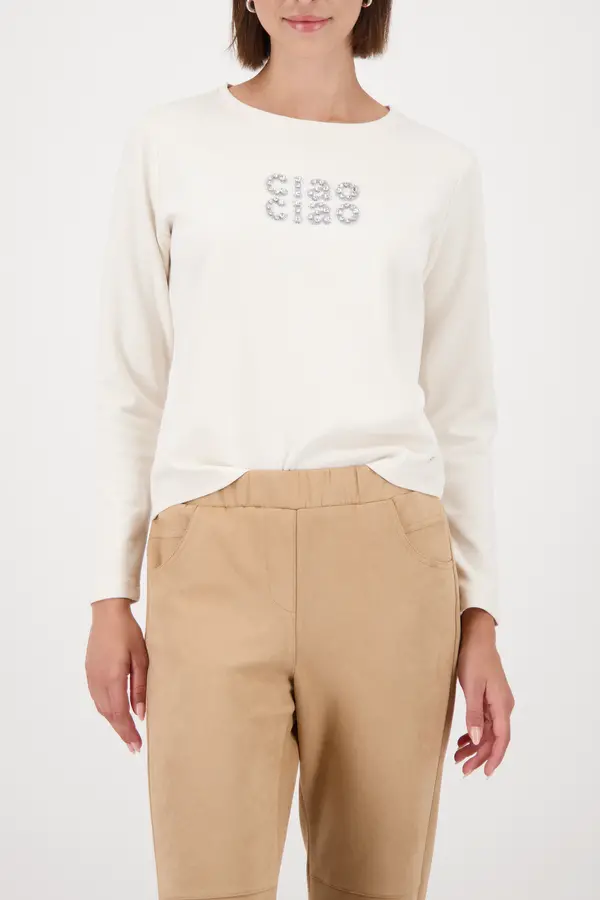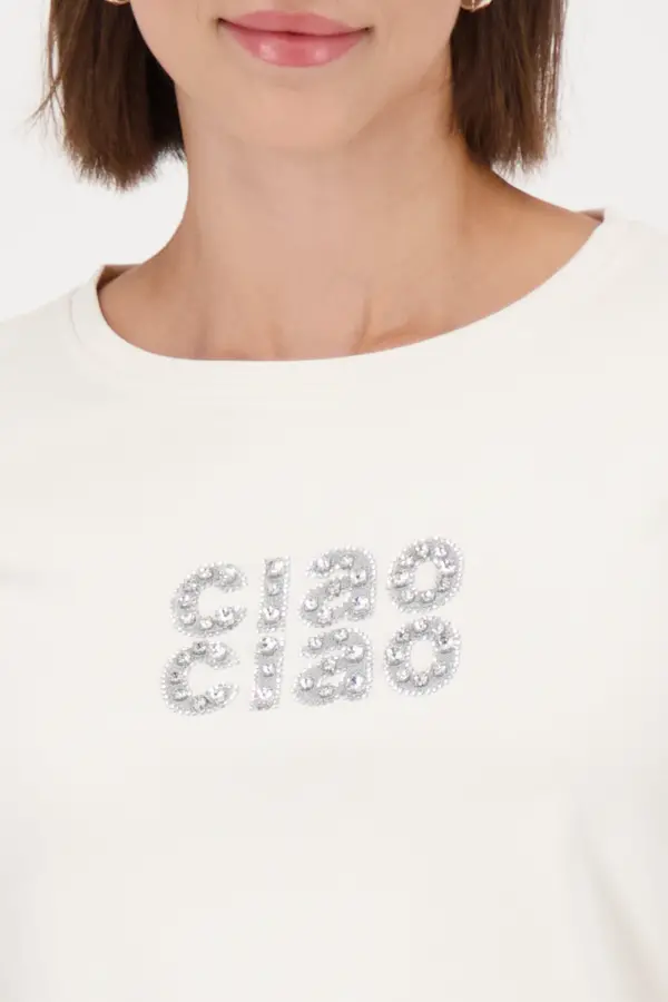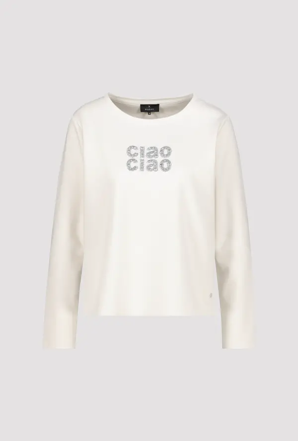 Elegantná a pohodlná: Táto mikina z padavej viskózy poteší svojou mäkkou textúrou a pôvabným nápisom „Ciao Ciao“.