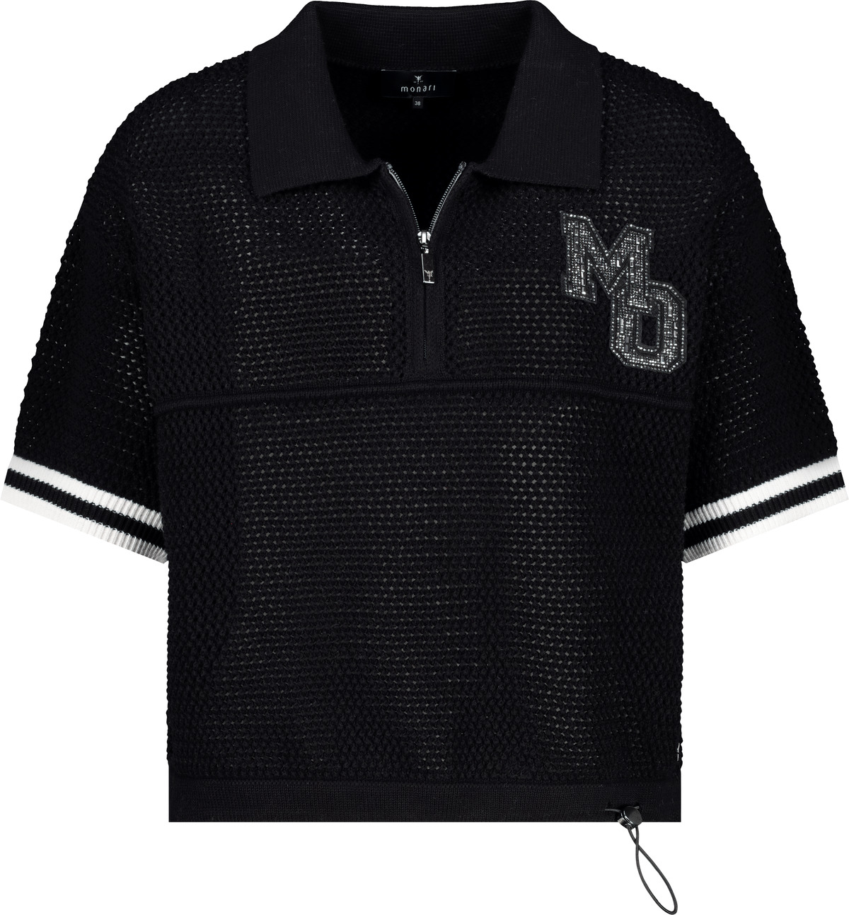 Polo golier so zipsom a elastický lem dodávajú športový nádych.