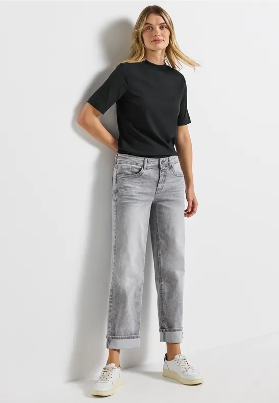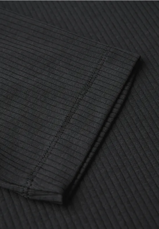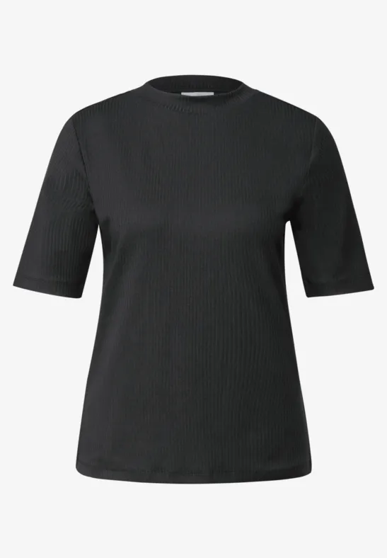 Toto dámske tričko od Street One kombinuje moderný rolák s jemnou rebrovanou textúrou.