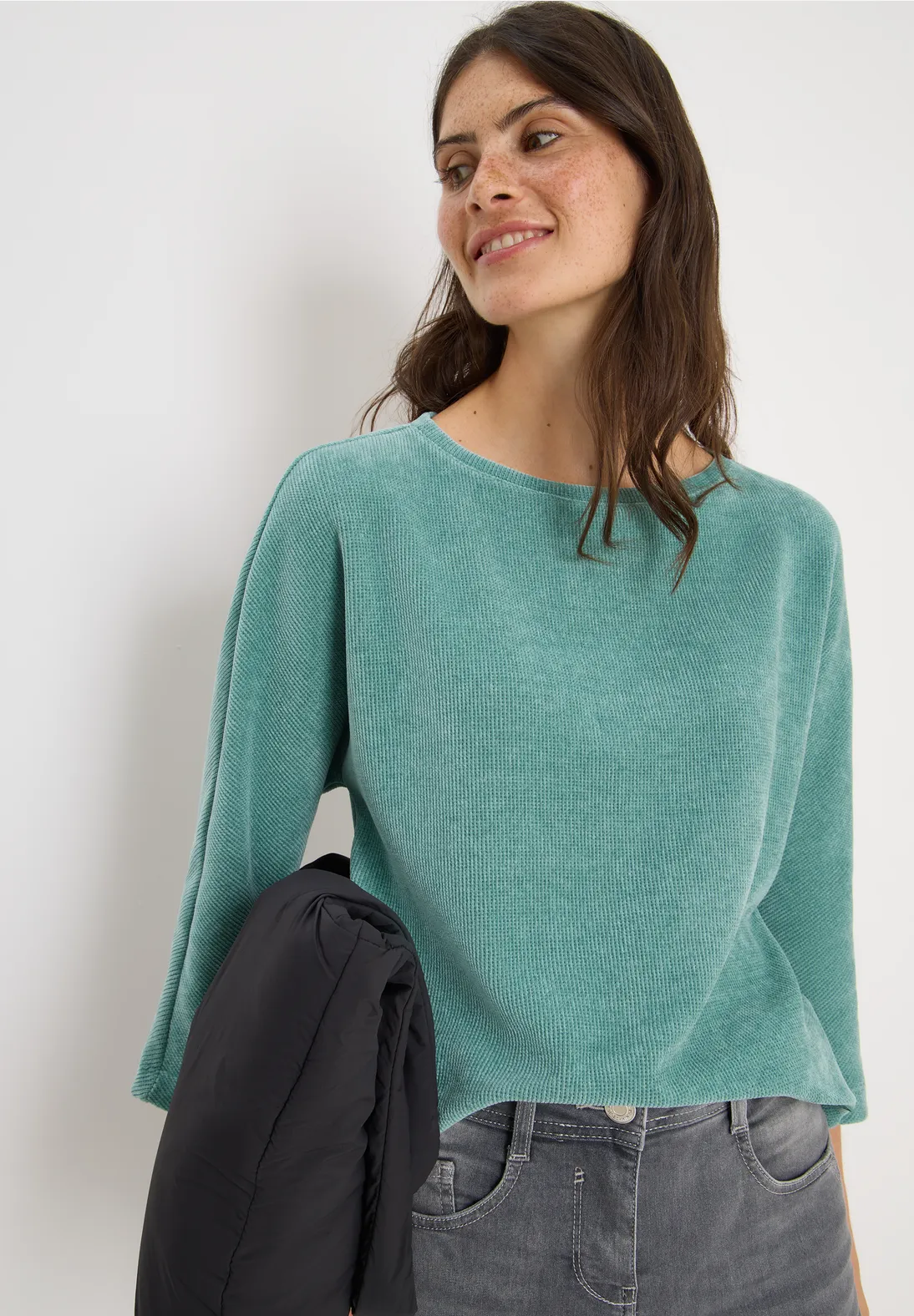 Táto dámska manšestrová košeľa od značky CECIL sa vyznačuje ženským lodičkovým výstrihom a 3/4 rukávmi.