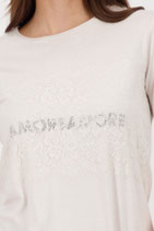 Táto bavlnená košeľa s modalom kombinuje vzácnu čipku, trblietavé kamienky a nápis "Amore Amore".