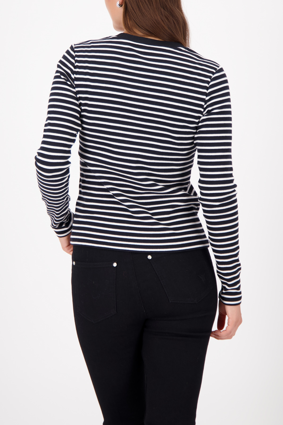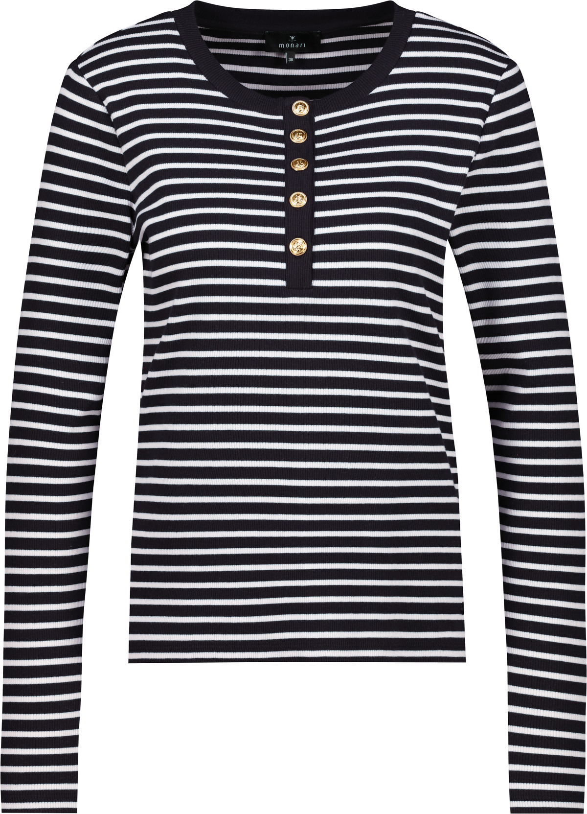 Tento top s dlhým rukávom vyrobená z vysoko kvalitnej bavlny kombinuje strečový materiál, elegantný pruhovaný vzor a trblietavé ozdobné gombíky.