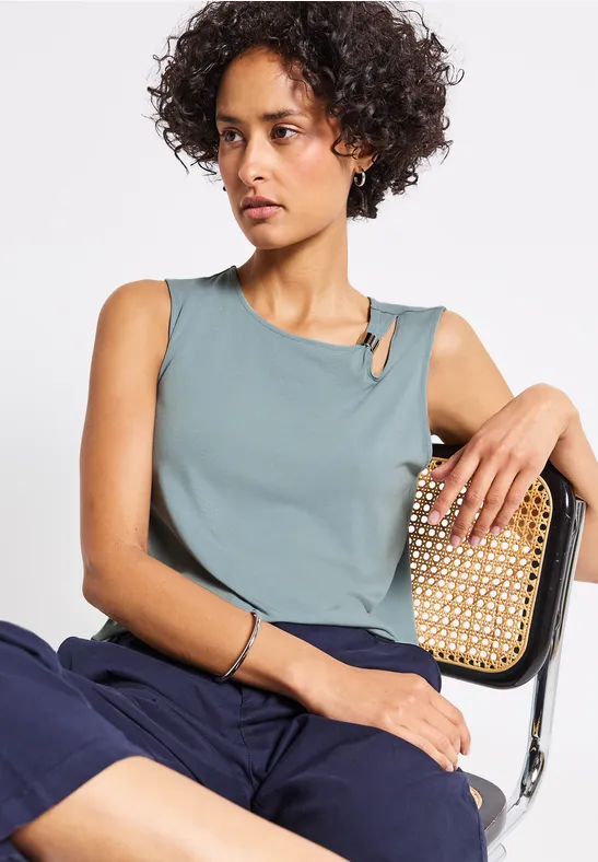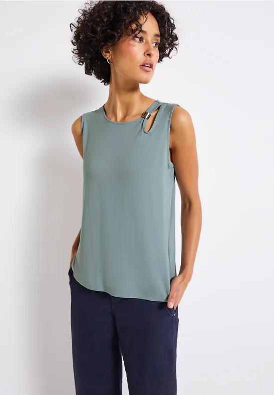 Tento letný top bez rukávov od značky Street One pre ženy zaujme ozdobnými detailmi na ramienkach.
