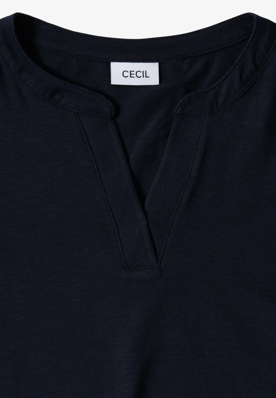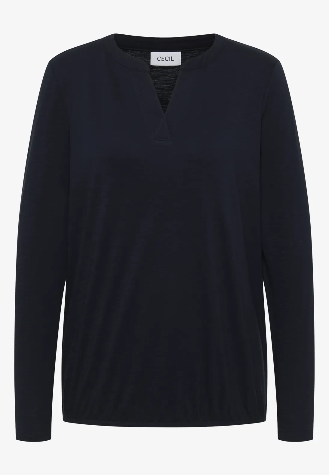 Táto dámska tunika od značky CECIL má klasický rozdelený výstrih, dlhé rukávy a elastický lem pre ležérny strih.