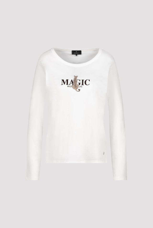 Táto košeľa s dlhým rukávom vyrobená zo 100 % bavlny sa vyznačuje leopardím vzorom, nápisom „Magic wild life“ a trblietavými kamienkami.